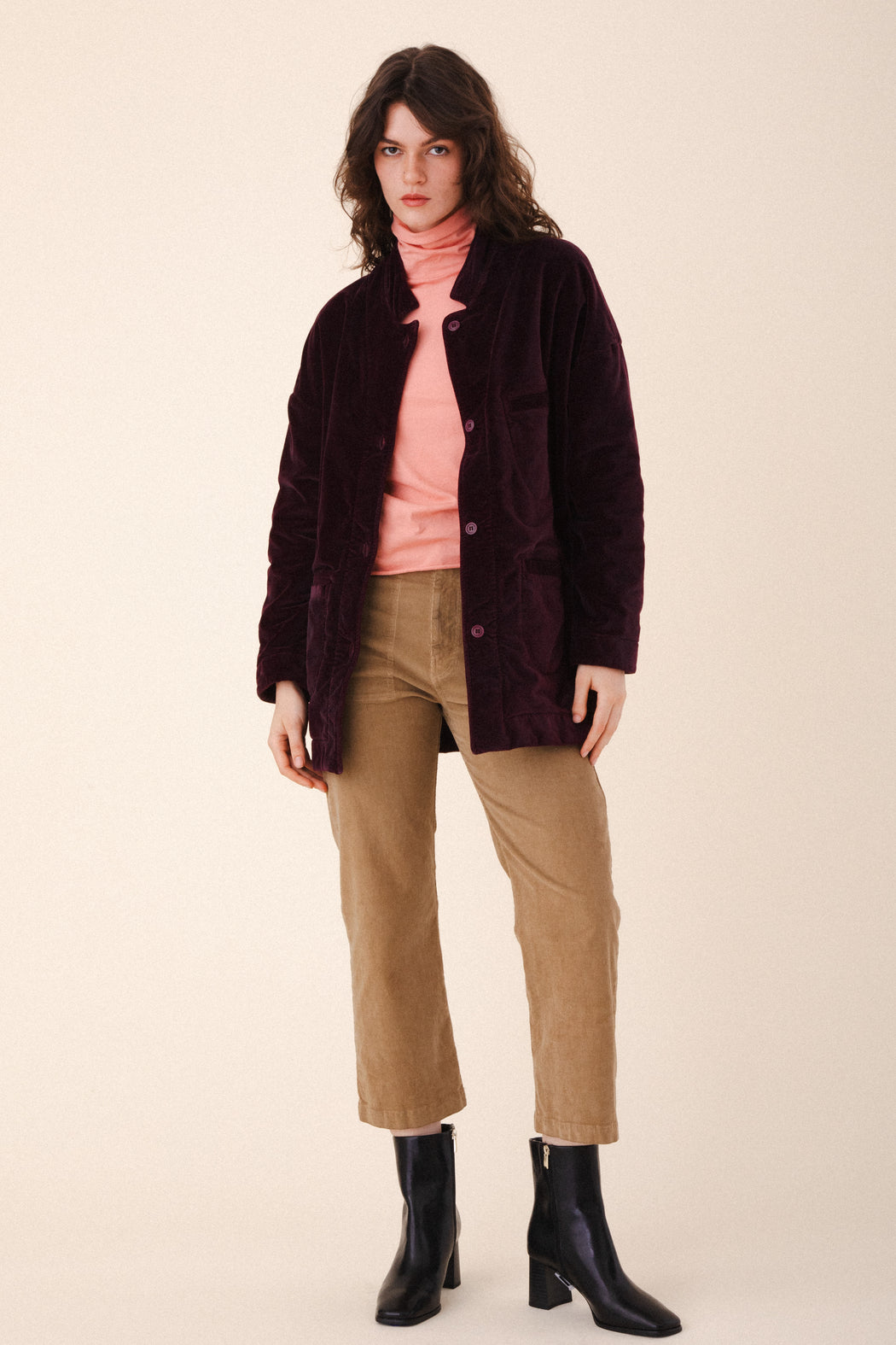 Timeless and sustainable, these straight-leg corduroy trousers are made from rich, textured deadstock cotton with a touch of spandex for just the right amount of stretch. Designed with a super high-rise fit, they feature classic front slash pockets, back patch pockets, and a sturdy zipper fly. The slightly cropped 26" inseam pairs effortlessly with boots or sneakers, making them a versatile staple for all heights. Soft, structured, and endlessly wearable—this is corduroy, elevated.