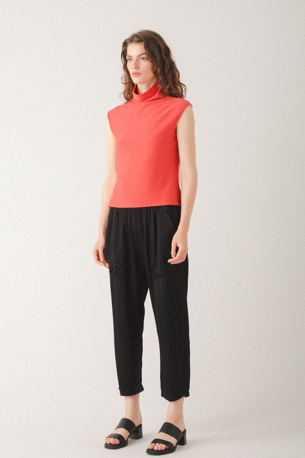 – Fit Notes: Relaxed, cropped fit with an elastic waist. Lightweight and airy.