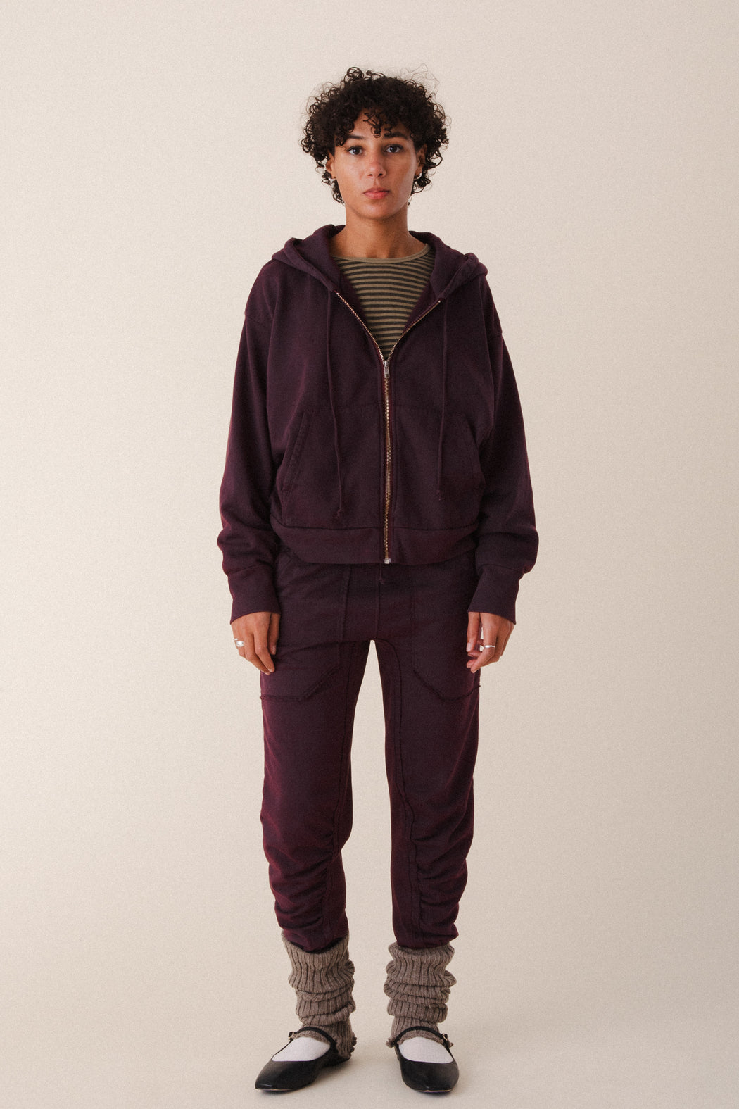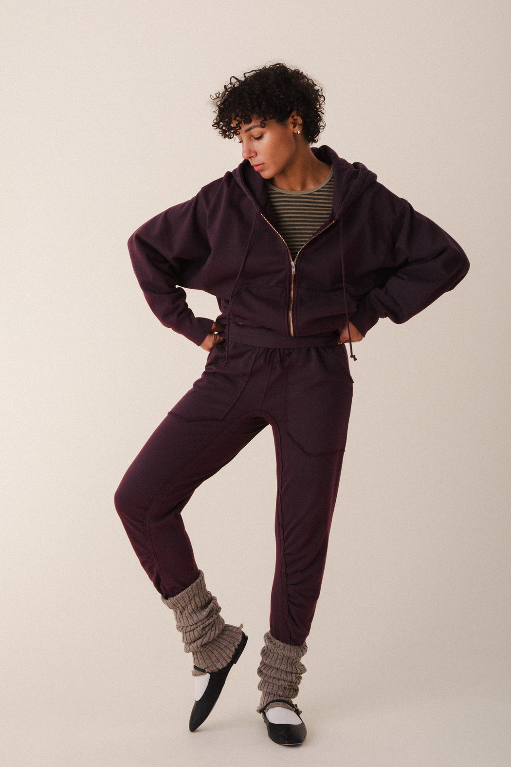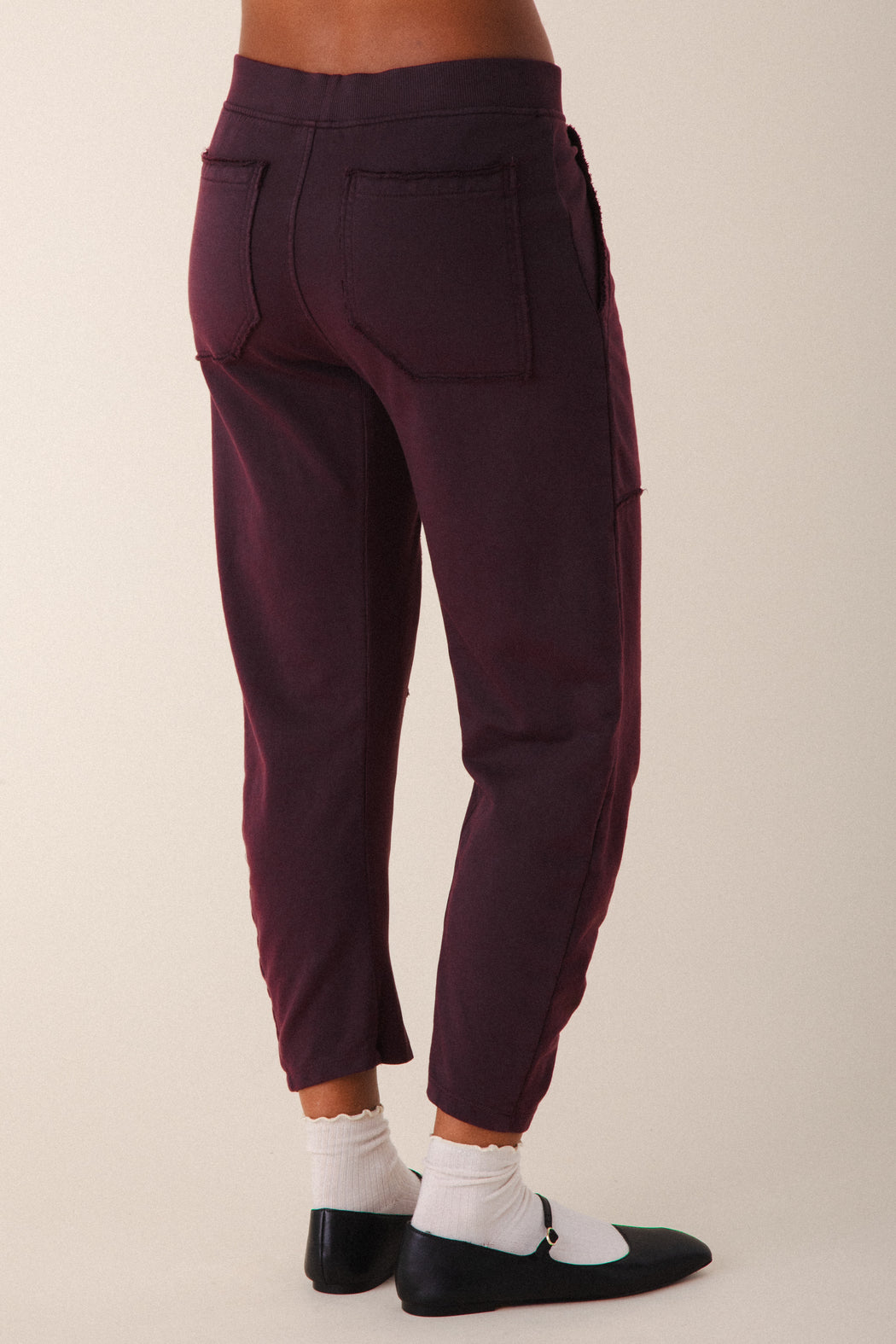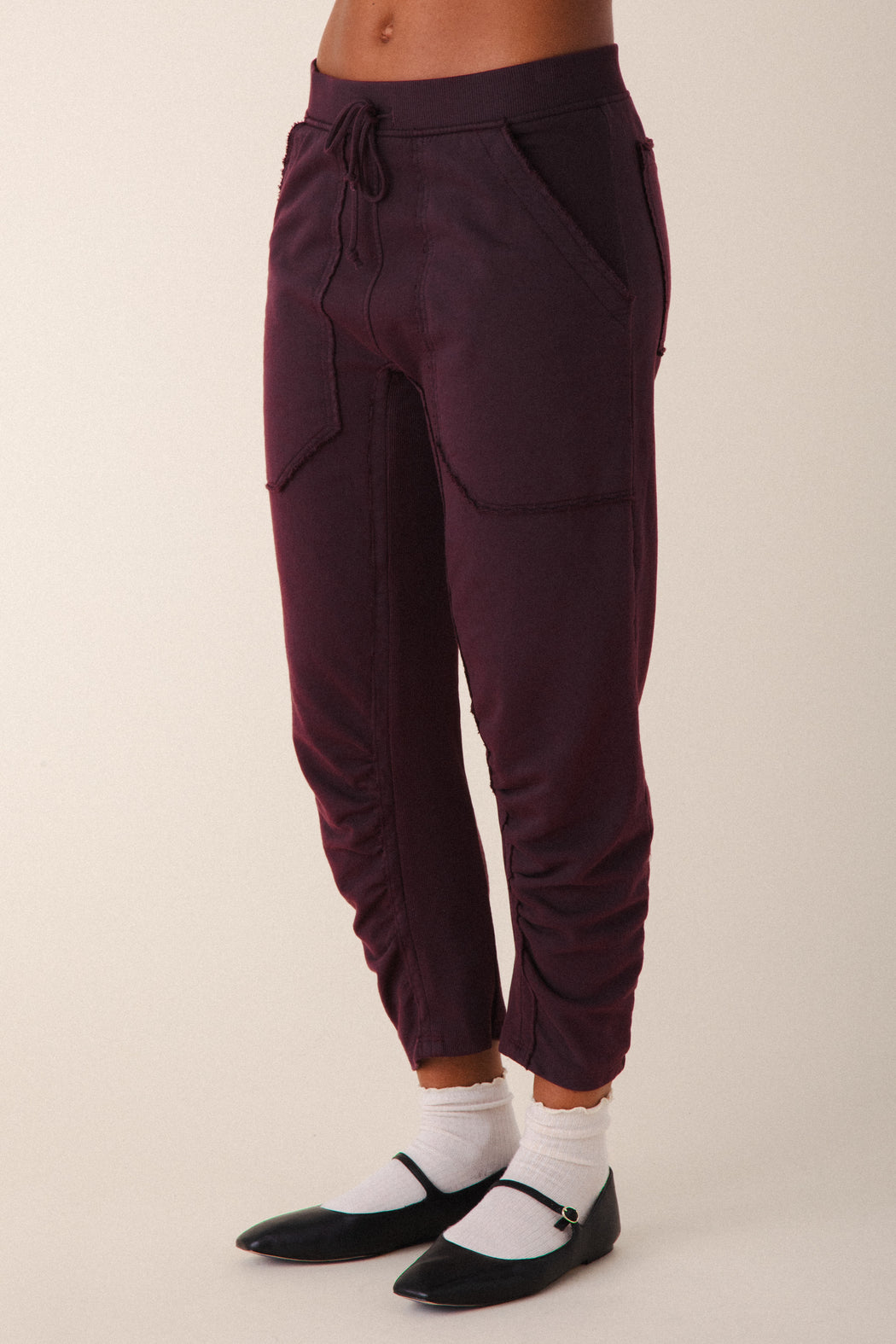 An elevated sweat-pant with all the bells and whistles. The relaxed, curved silhouette has rib inseam inserts, raw-edge patch pockets at front and back, gathers at the calf and a medium relaxed rise. Dressy or casual, they may be worn as a foil to silk blouses or crisp woven shirts, or with your favorite tennis shoes.