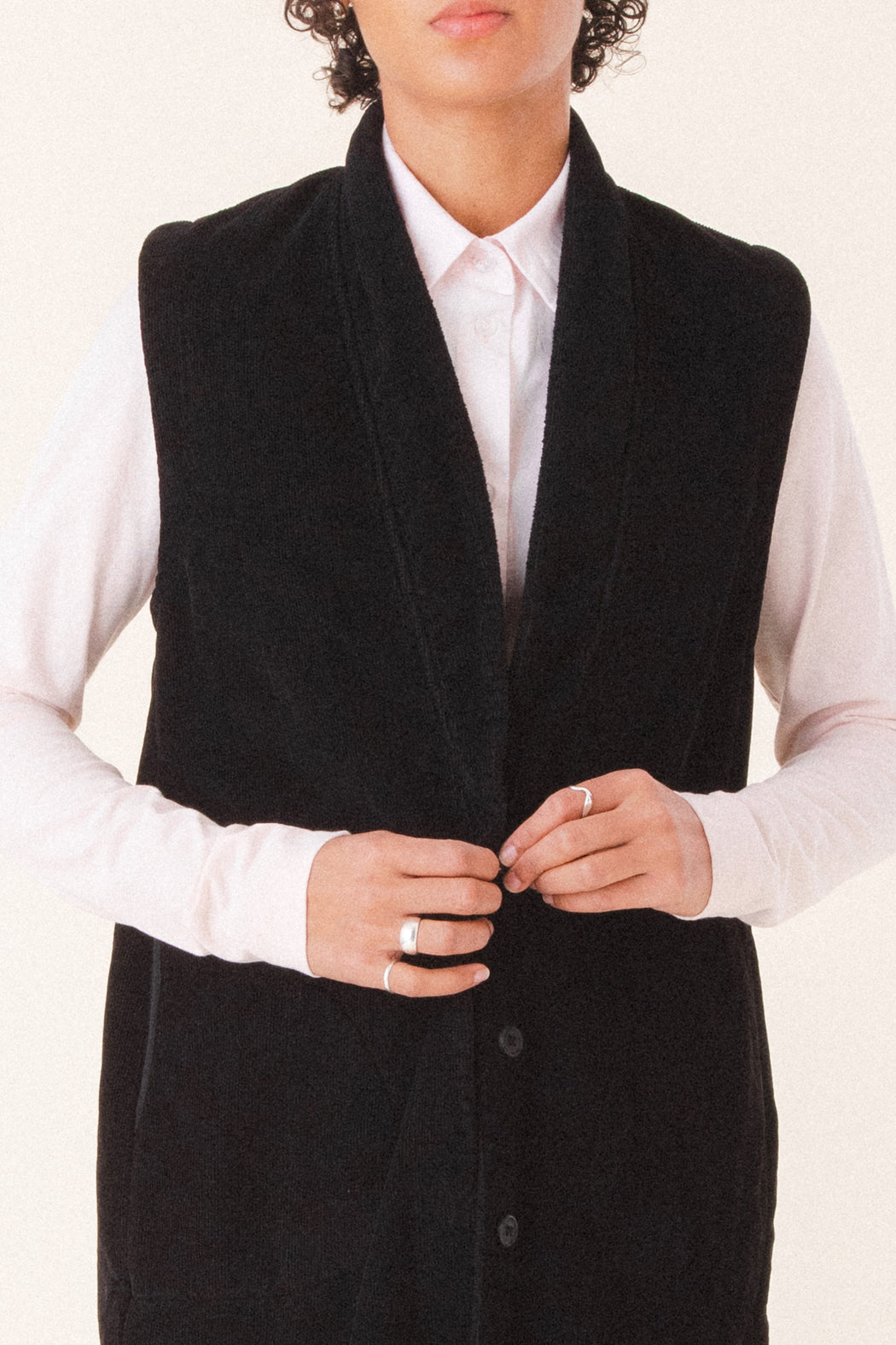 Free your arms with a vest, and make it three-quarters in length for the ultimate core warmth. The Fireside Vest will diminish the chill of drafts in winter while pulling together an ensemble that is equal parts elegance and industry. Excellent layered over or under your winter coat, this quilted, plant-based puffer will also be put to good use in every season in the Pacific Northwest.