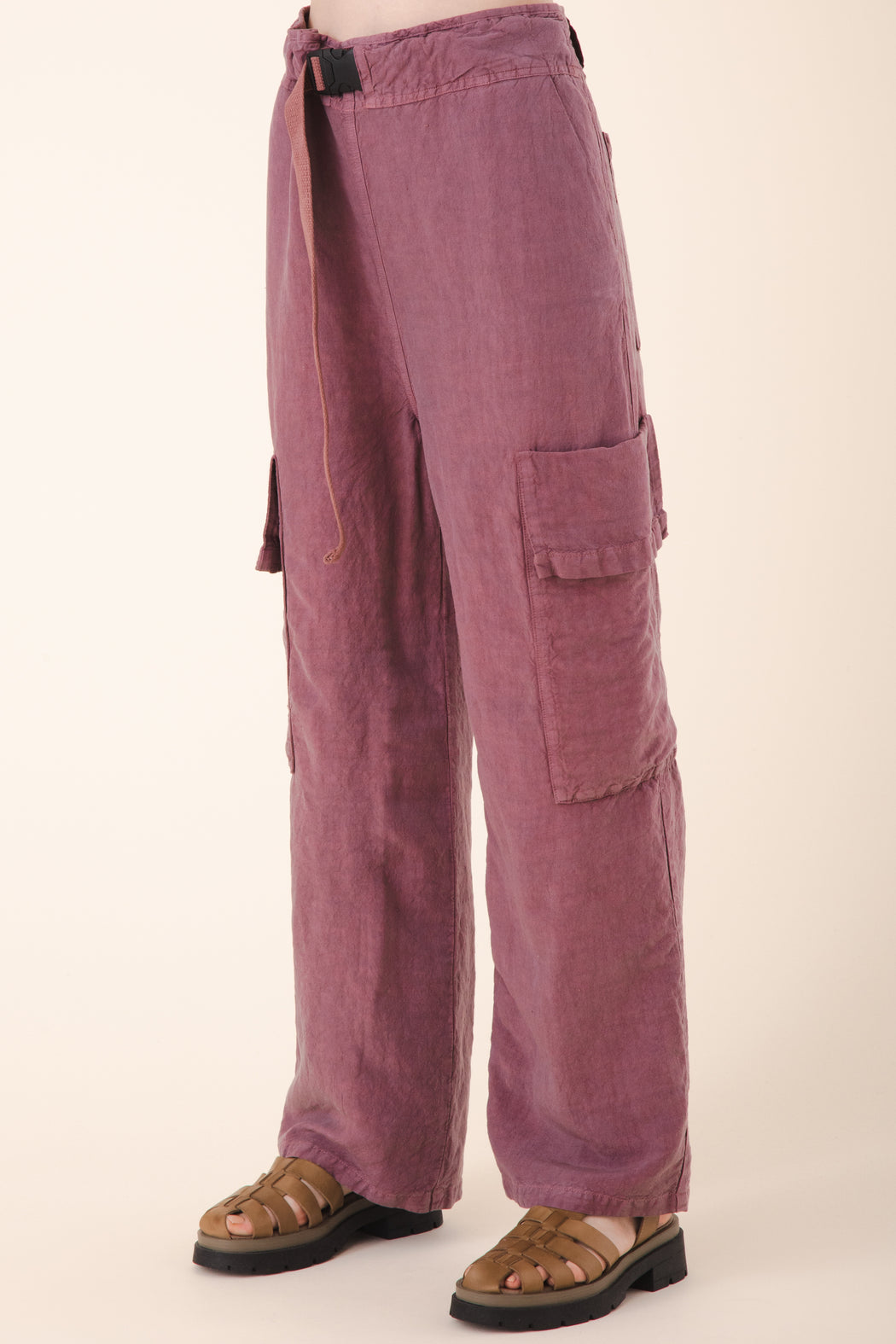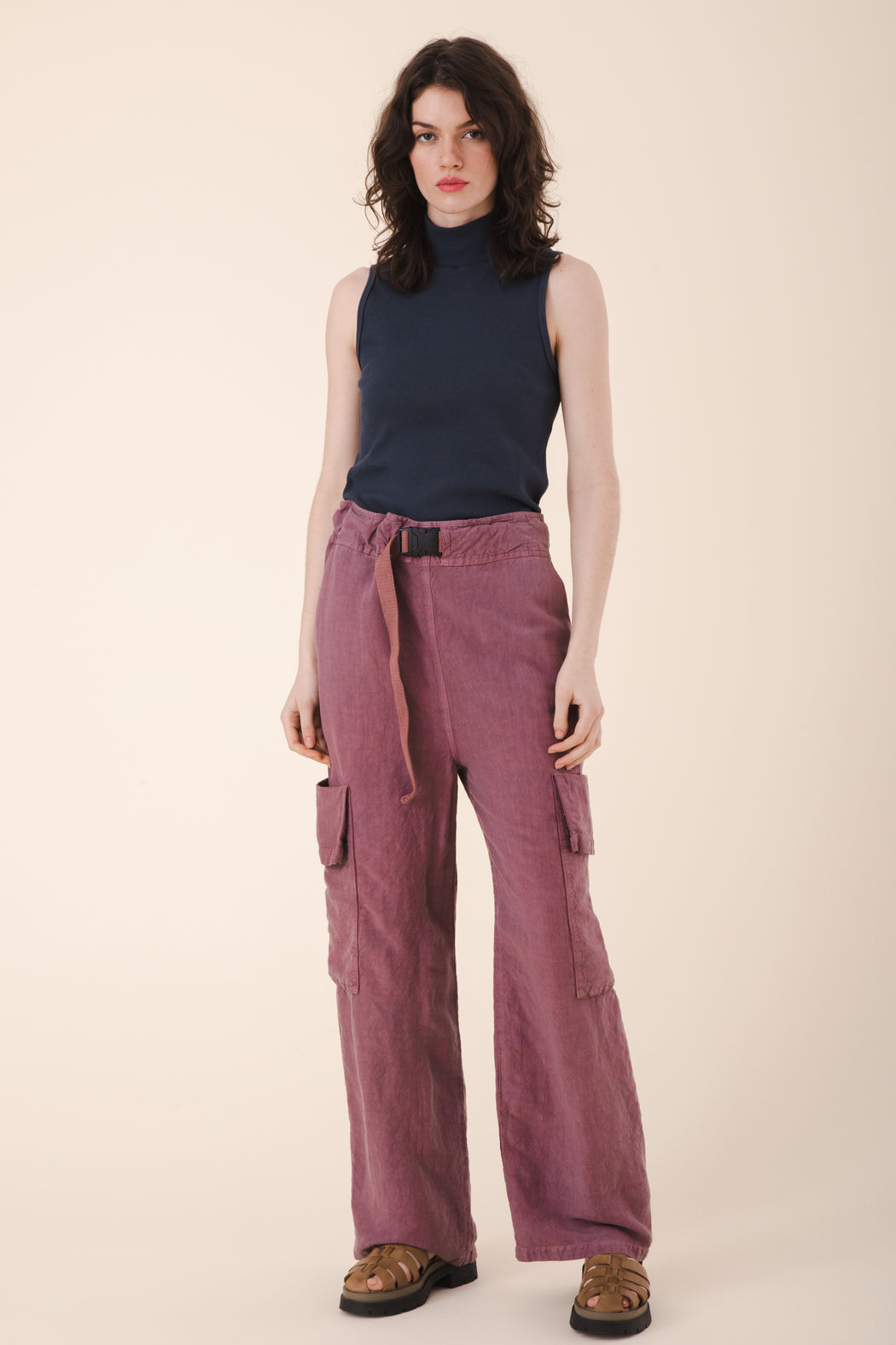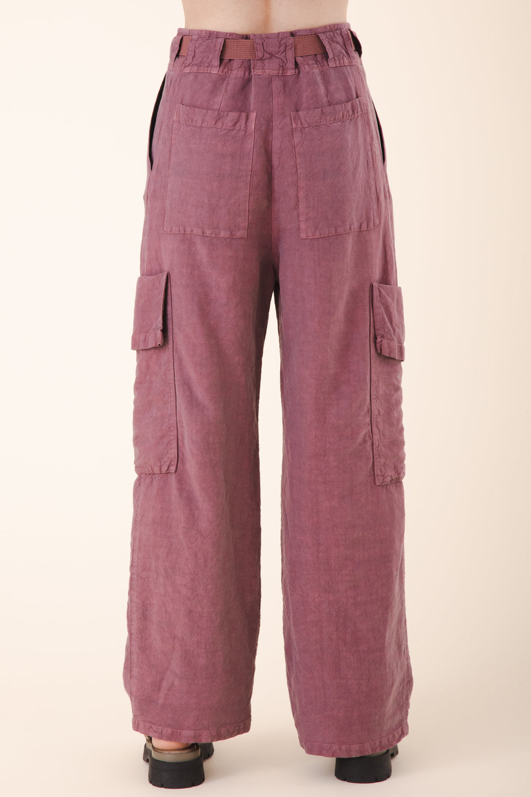 Our cult favorite wide-leg pant is back in an elegant hemp/silk blend. The same ankle-length pant includes an adjustable belt for a secure and customized fit. In this version, we opened the belt channel for ease in swapping out the belt or removing it for laundry.  Large pockets throughout display our commitment to utility.  An additional pocket on the side leg is designed as a sack, offering two separate interiors for storage and a fold-over top. These refined cargo pants are the perfect foundation for day-to-night dressing.