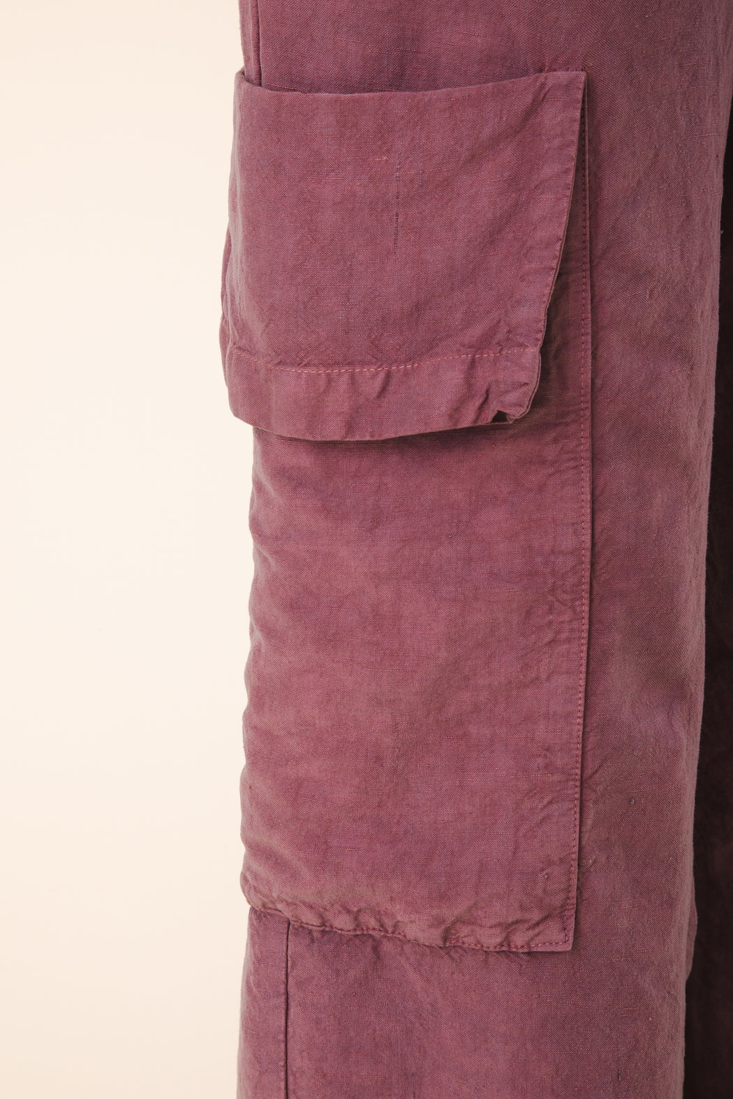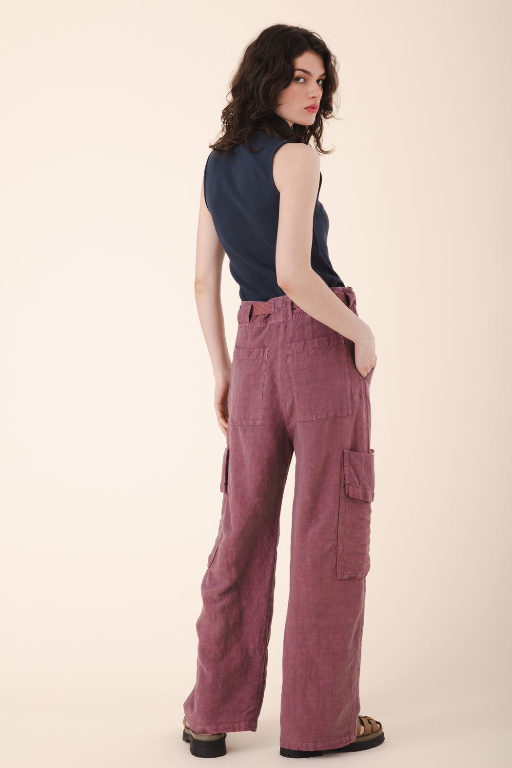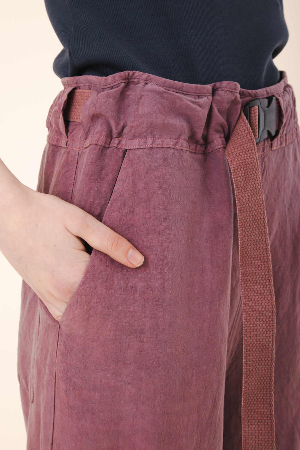 Our cult favorite wide-leg pant is back in an elegant hemp/silk blend. The same ankle-length pant includes an adjustable belt for a secure and customized fit. In this version, we opened the belt channel for ease in swapping out the belt or removing it for laundry.  Large pockets throughout display our commitment to utility.  An additional pocket on the side leg is designed as a sack, offering two separate interiors for storage and a fold-over top. These refined cargo pants are the perfect foundation for day-to-night dressing.