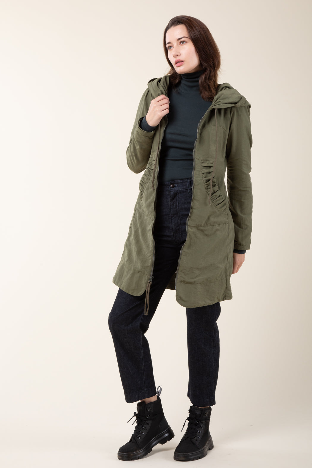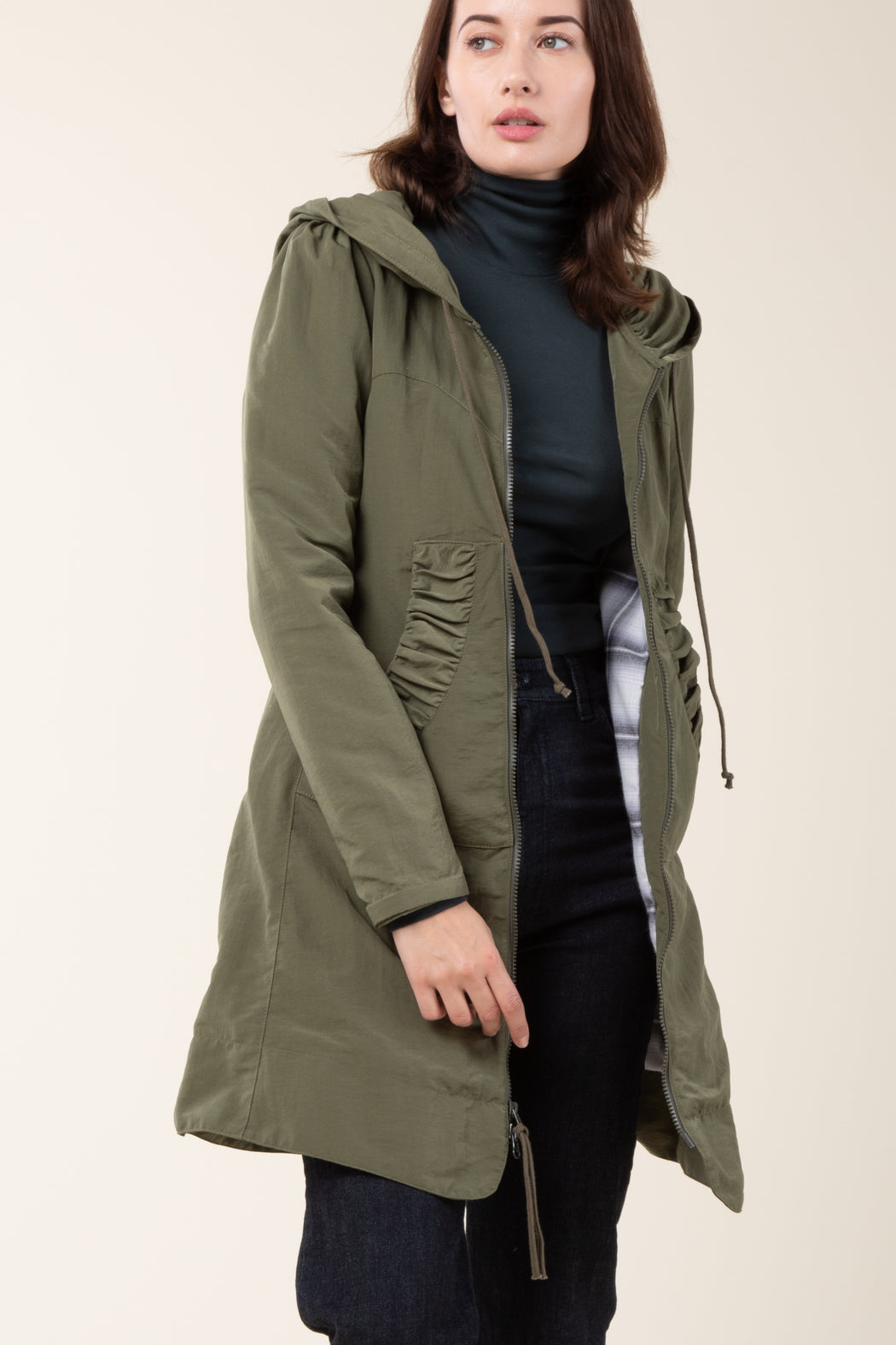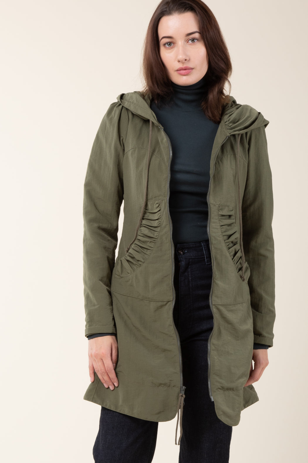 Our best-selling Long Cloak Hoodie was reinvented as a Victorian-style Raincoat with an exaggerated hood and soft cotton lining. A water-resistant raincoat perfect for light showers and windy afternoons. Cut, sewn, and finished where we live in Seattle. Our collection directly supports manufacturing in the United States.