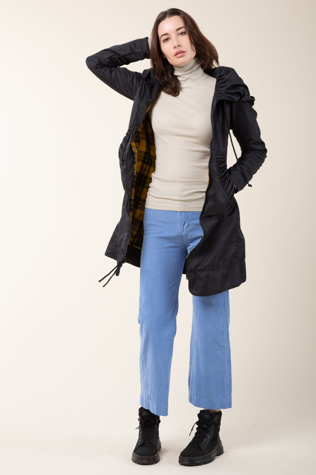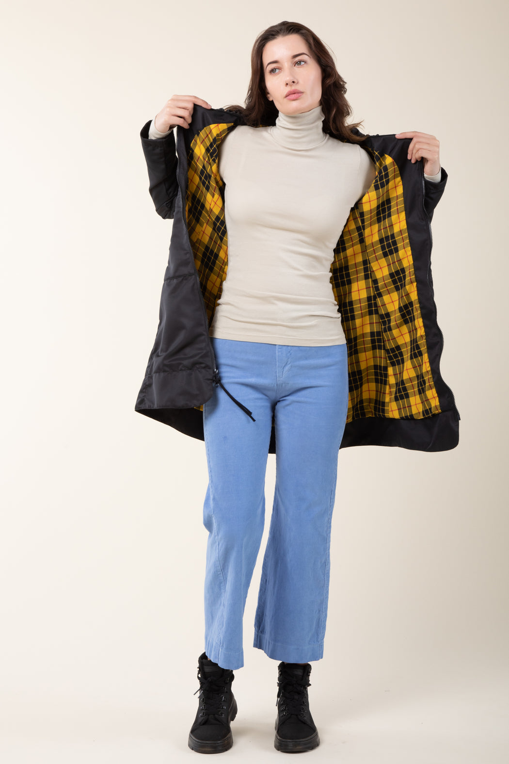 Long Raincloak in Black with Yellow Plaid