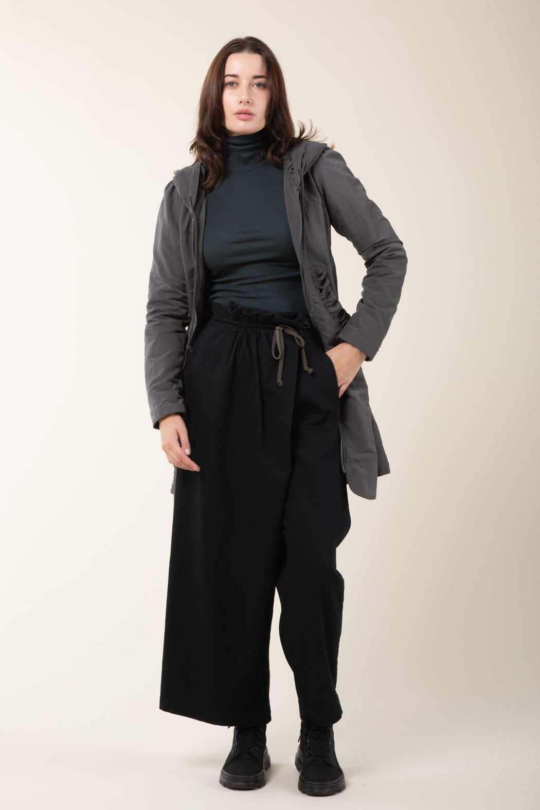 Our best-selling Long Cloak Hoodie was reinvented as a Victorian-style Raincoat with an exaggerated hood and soft cotton lining. A water-resistant raincoat perfect for light showers and windy afternoons. Cut, sewn, and finished where we live in Seattle. Our collection directly supports manufacturing in the United States.