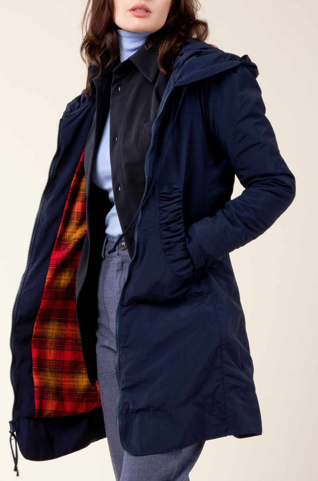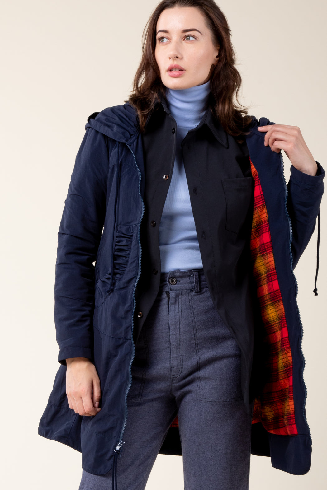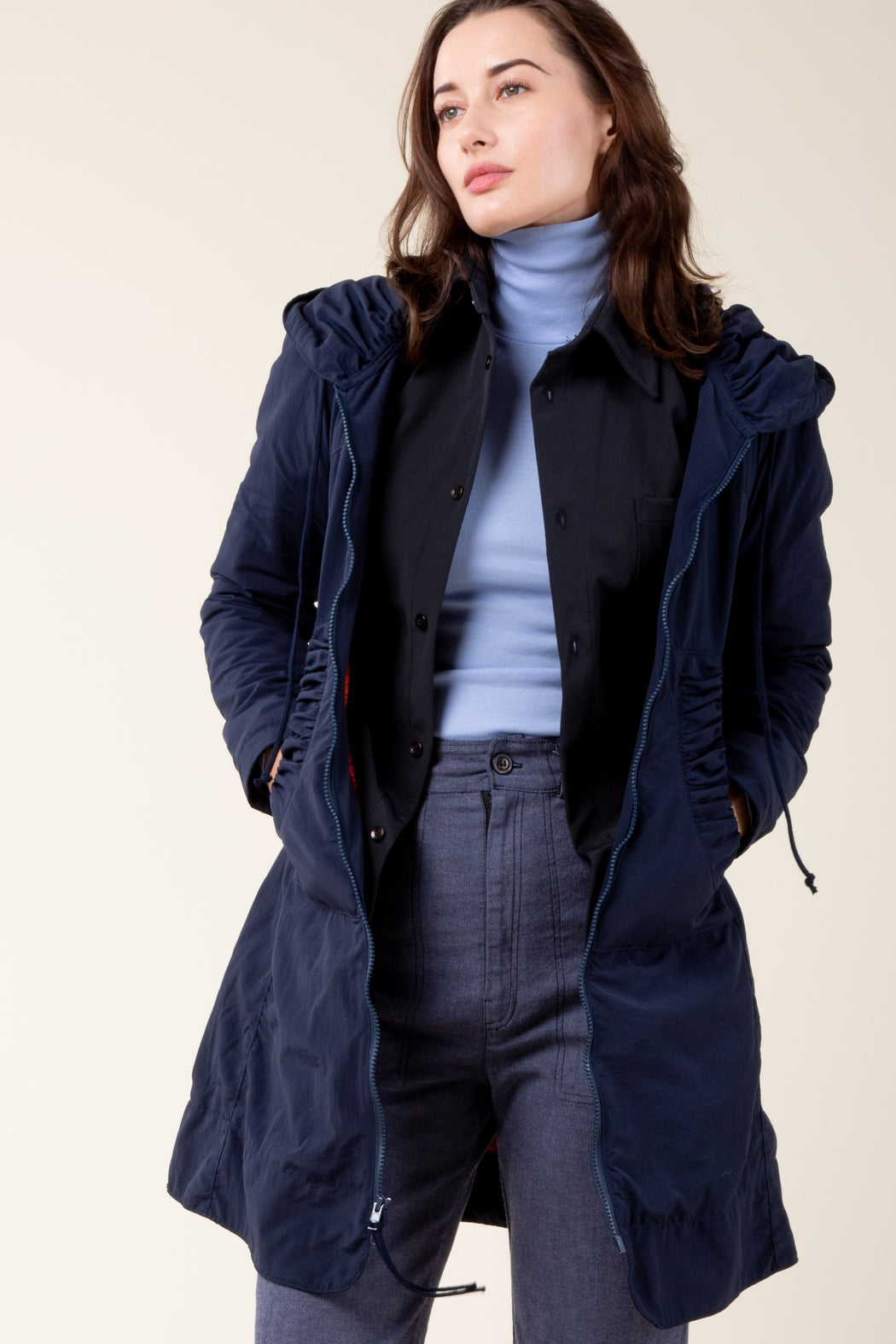 Our best-selling Long Cloak Hoodie was reinvented as a Victorian-style Raincoat with an exaggerated hood and soft cotton lining. A water-resistant raincoat perfect for light showers and windy afternoons. Cut, sewn, and finished where we live in Seattle. Our collection directly supports manufacturing in the United States.
