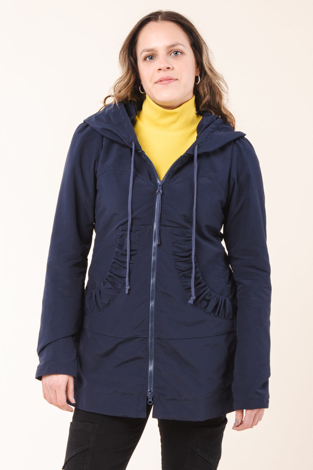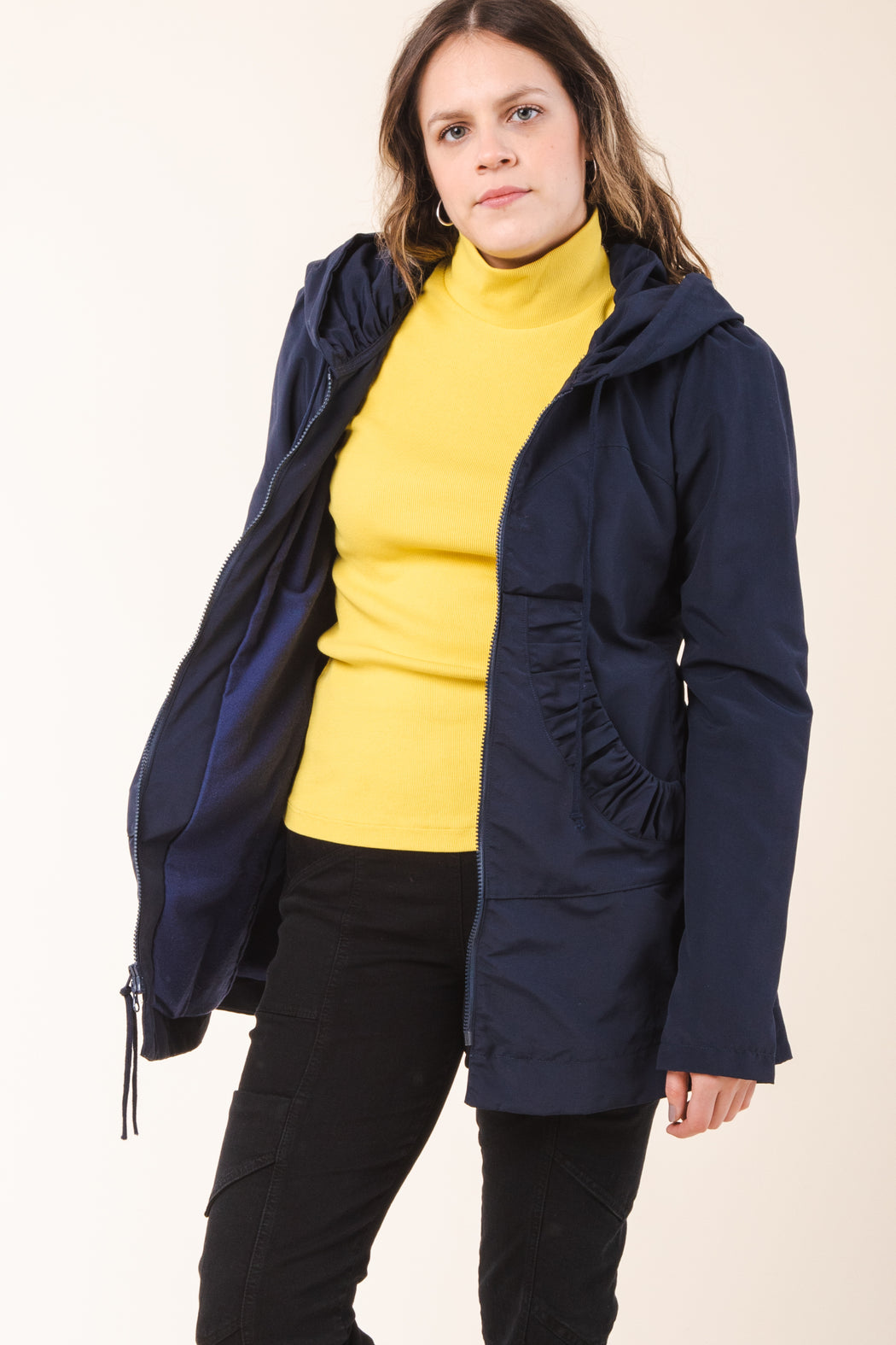 You asked for it and we listened! Our best selling Long Raincloak is now available in a flattering mid-length version. This piece has the same Victorian detailing, exaggerated hood with draw cord, and soft cotton flannel lining but is 6” shorter ending at upper thigh. The shorter silhouette has a less exaggerated flair and feels light and sporty. A water-resistant raincoat perfect for light showers and windy afternoons. We recommend sizing up if you plan to layer. Cut, sewn, and finished where we live in Seattle. Our collection directly supports manufacturing in the United States.