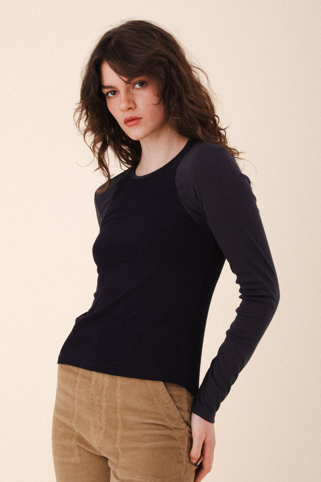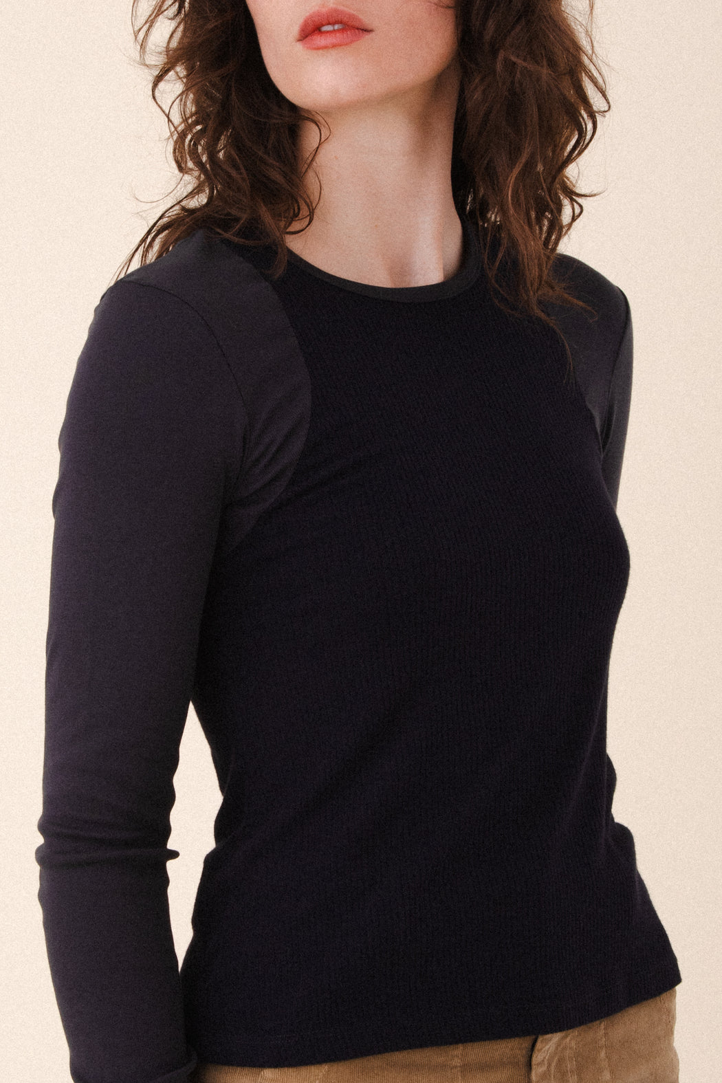 -Combination of organic cotton baby-rib and rayon spandex poor boy rib