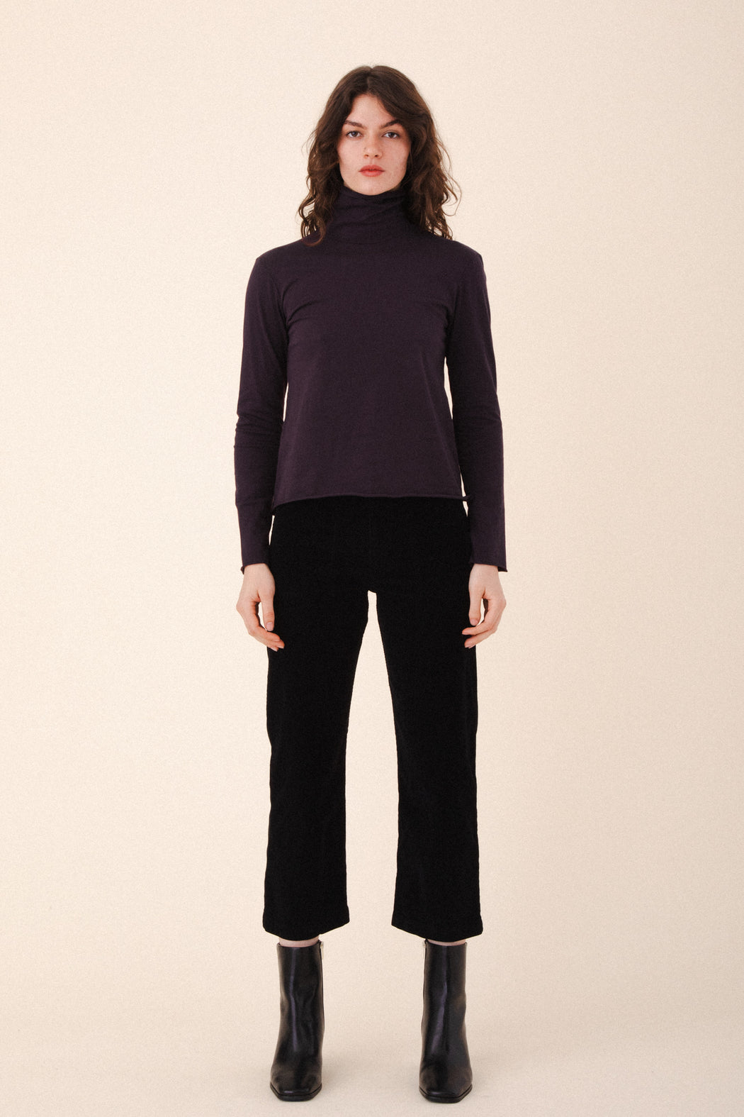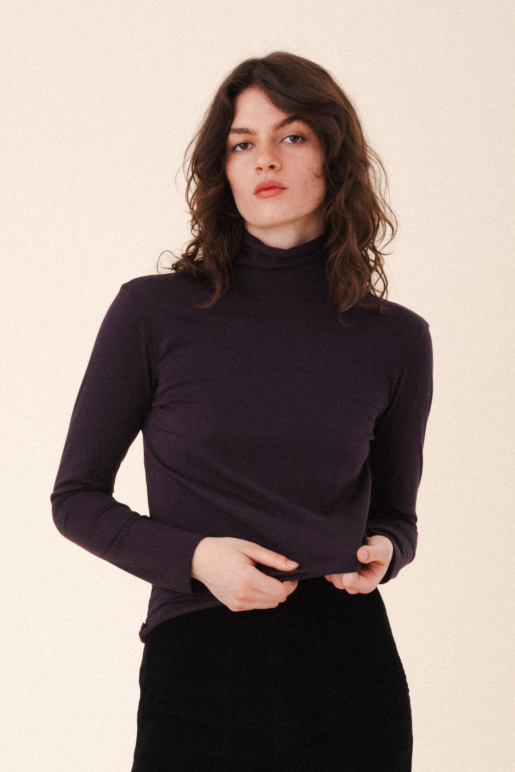 Effortlessly elegant, the Barre T-Neck is a sleek essential with a soft, slouchy neckline and delicate rolled hem details. Crafted from our softest organic cotton jersey, it offers a smooth, streamlined fit that layers beautifully or stands strong on its own. Designed for versatility and inspired by winter’s quiet calm, the turtleneck can be worn scrunched or folded—your mood, your way.