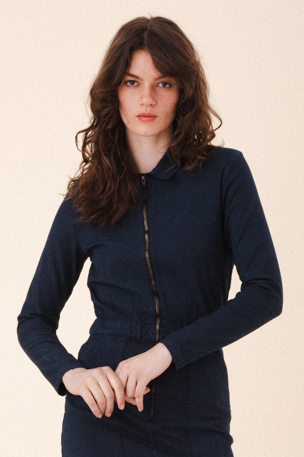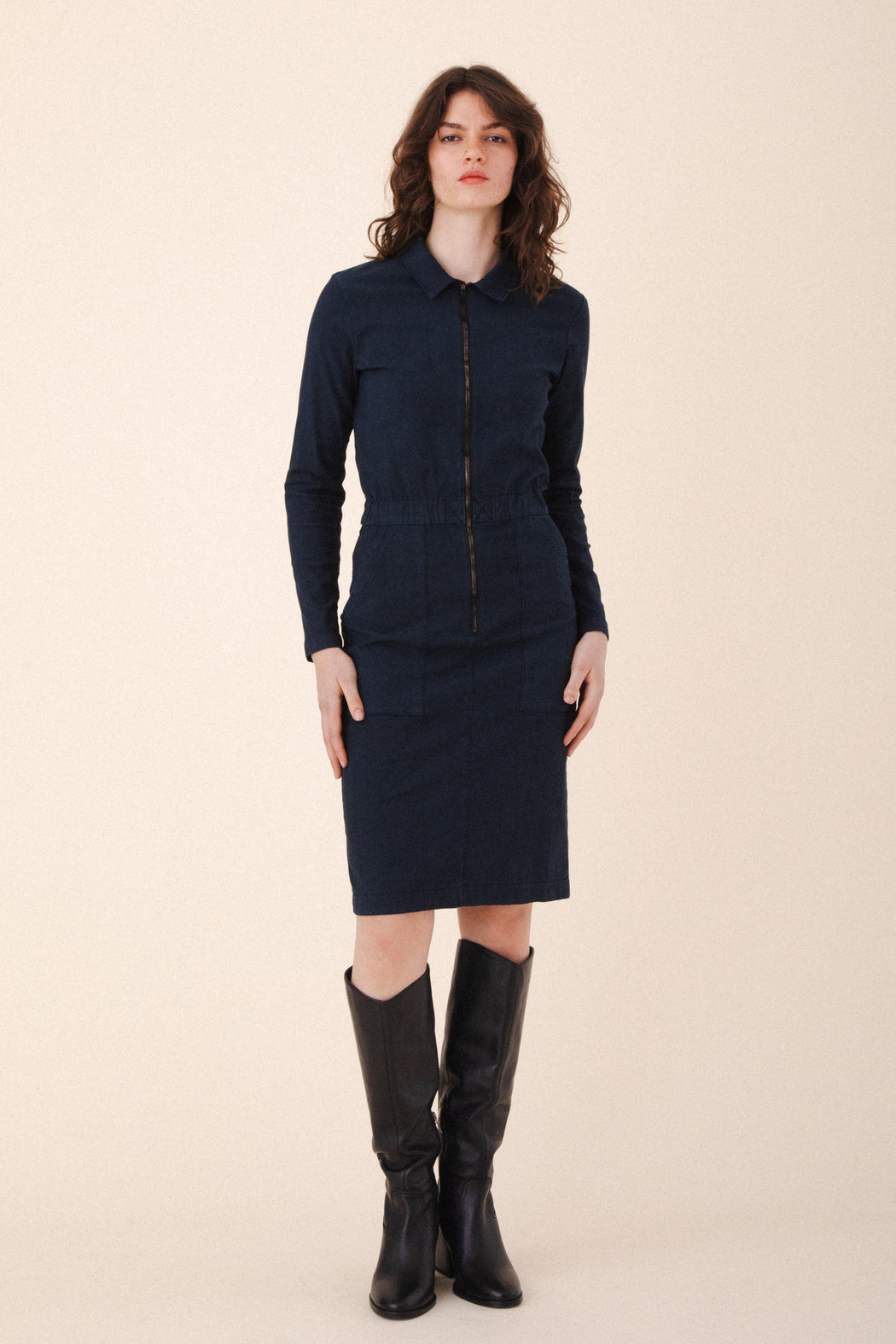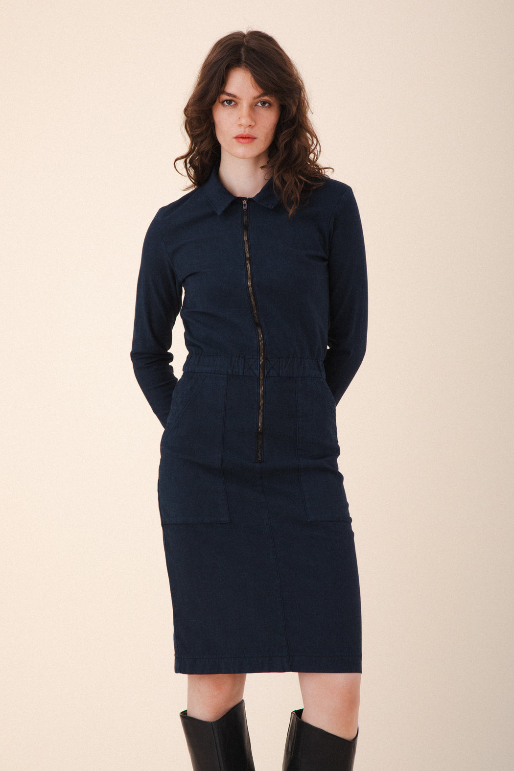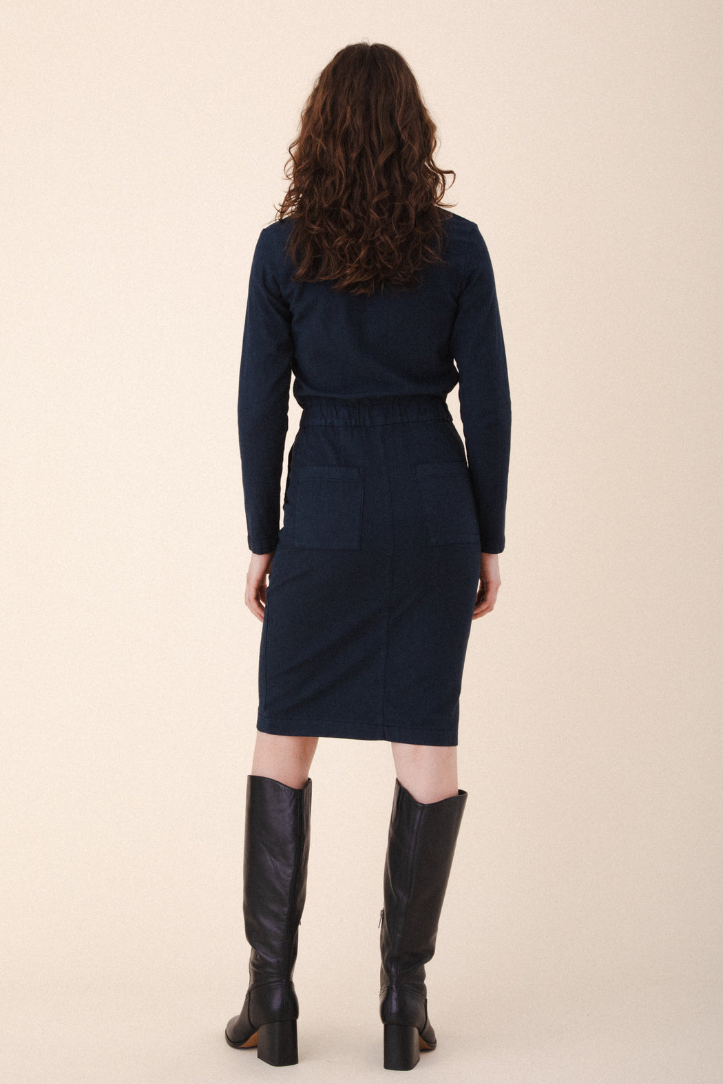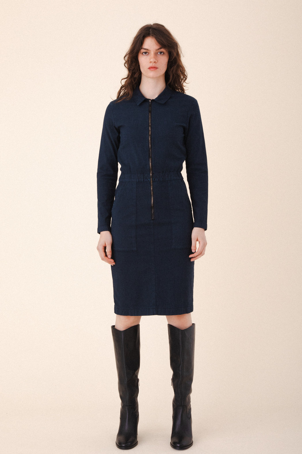 Your favorite coveralls, all dressed up. The Boiler Dress is a bold, utilitarian take on everyday dressing—designed to get things done in style. Featuring a zip front, soft elastic waist, and oversized patch pockets, it balances structure with ease for a fit that works as hard as you do. Inspired by women who lead with their hands and hearts, this is your winter uniform: functional, fearless, and unapologetically you.