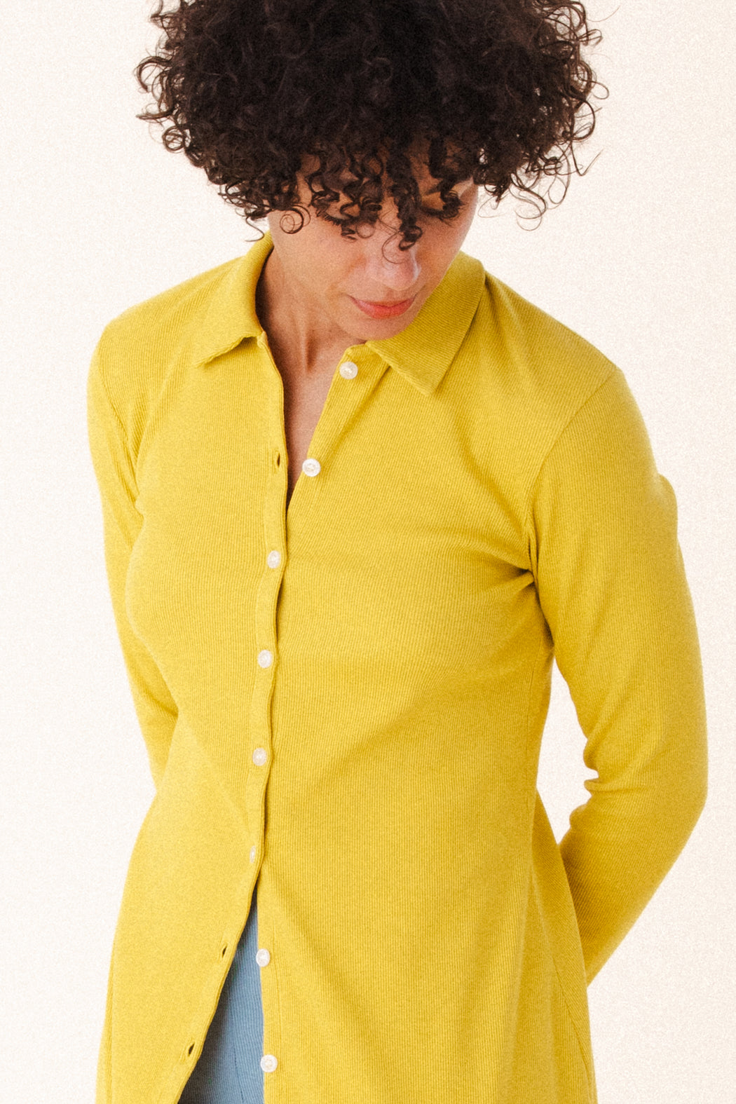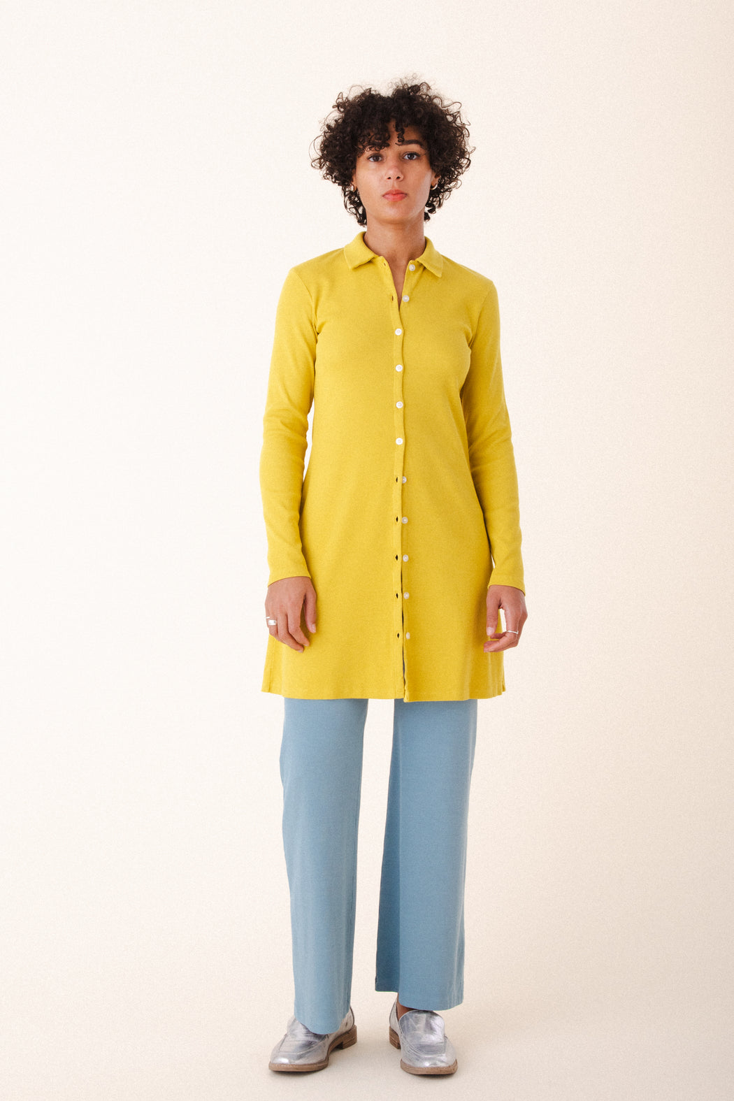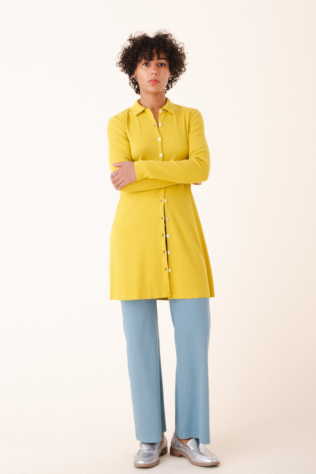 The body-skimming rules of equestrian style have been expanded in this thick rib button-down dress. Carefully placed buttons and long sleeves extend the seasonless possibilities for wear. Whether worn alone in late Summer or over jeans and tights in the winter, this dependable dress is poised and tailored and ready to style in a manner that suits your mood.