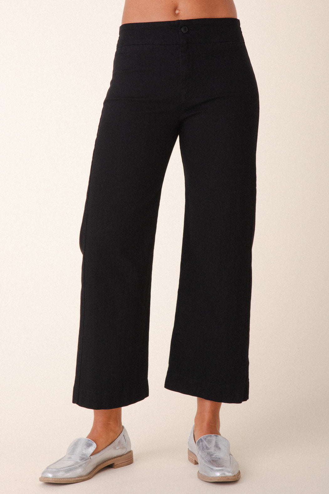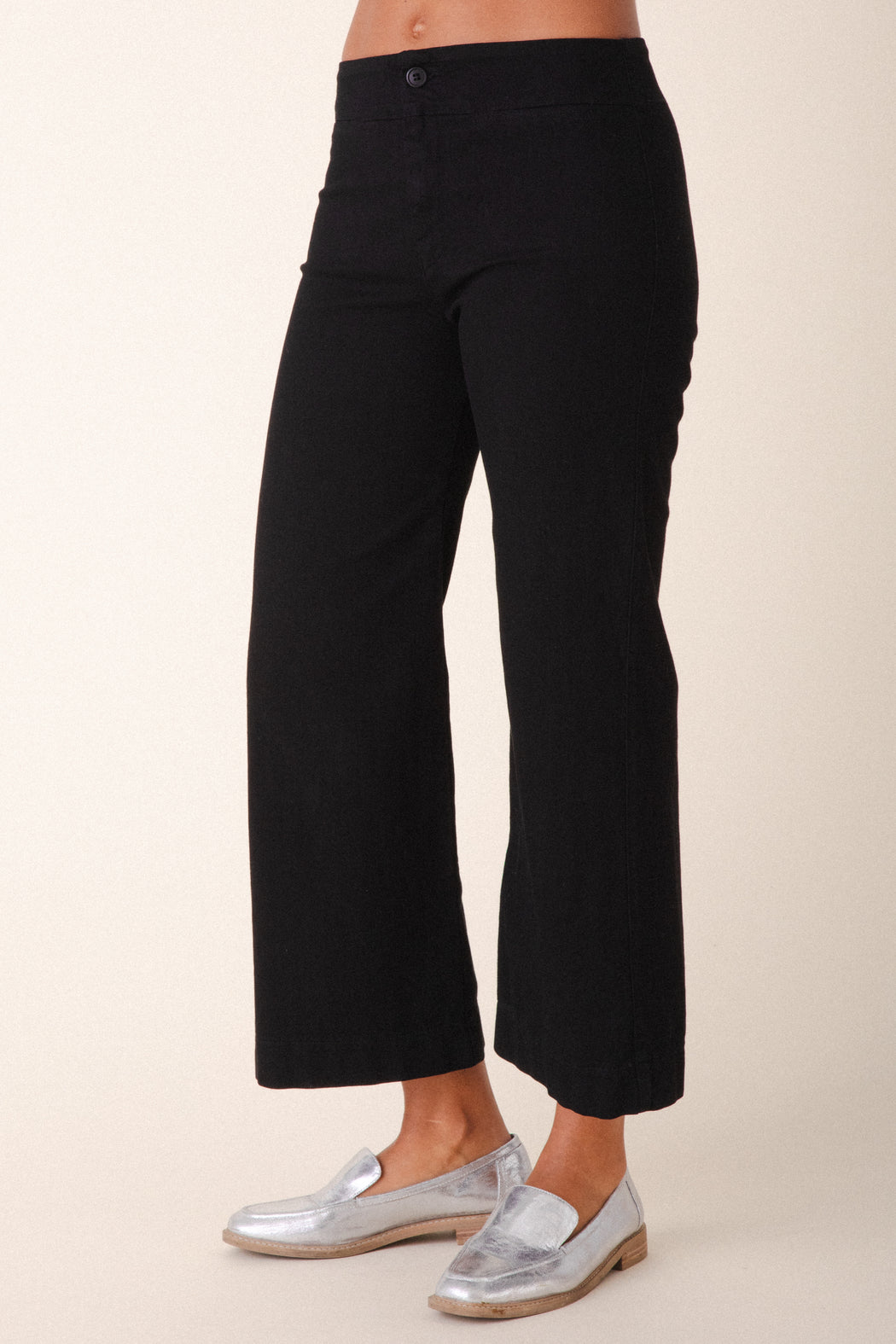 The newest addition to the range of our most popular pant silhouette. The Document Pant is a sleek mid-rise, cropped flare in a high stretch twill that conforms to your body. Casual and classic, with two back darts for shaping and subtle front pockets that add convenience while maintaining a clean base for layering. The denim has been overdyed and pre-shrunk. Some dye transfer may occur before the first two laundry cycles.  Wash in cold water to prevent fading.