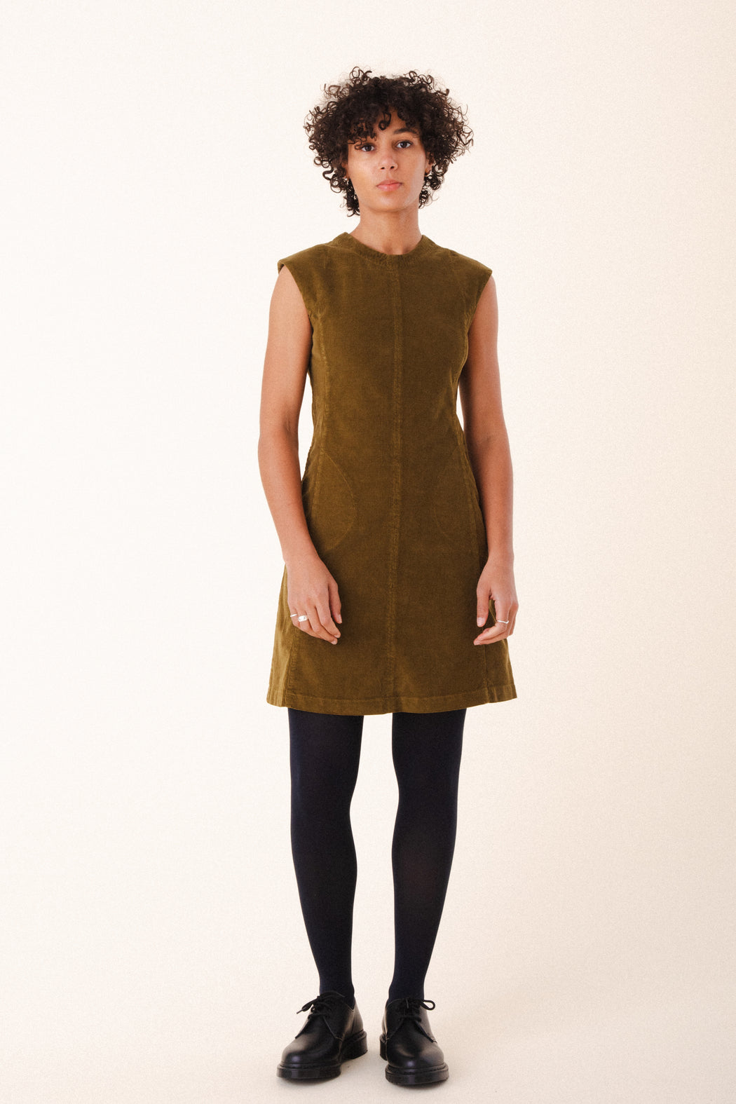 The perfect little corduroy dress. Feel Form is universally flattering with classic princess seams at the front and back. A slight exaggeration of shoulders keeps the silhouette fresh and strong for today. With side seam pockets and topstitching throughout, this workhorse dress is a timeless classic.