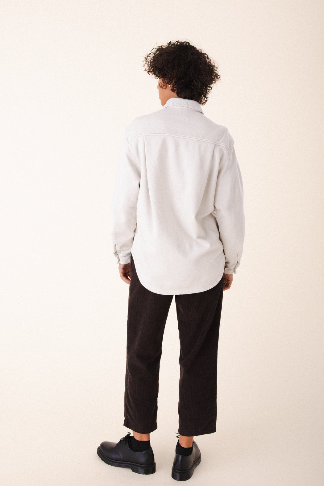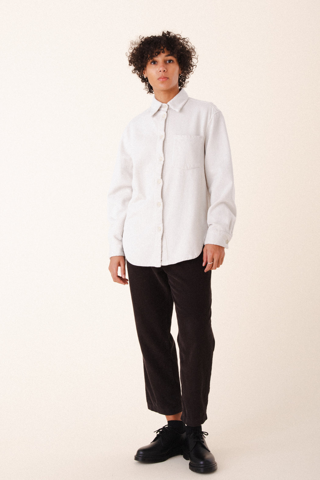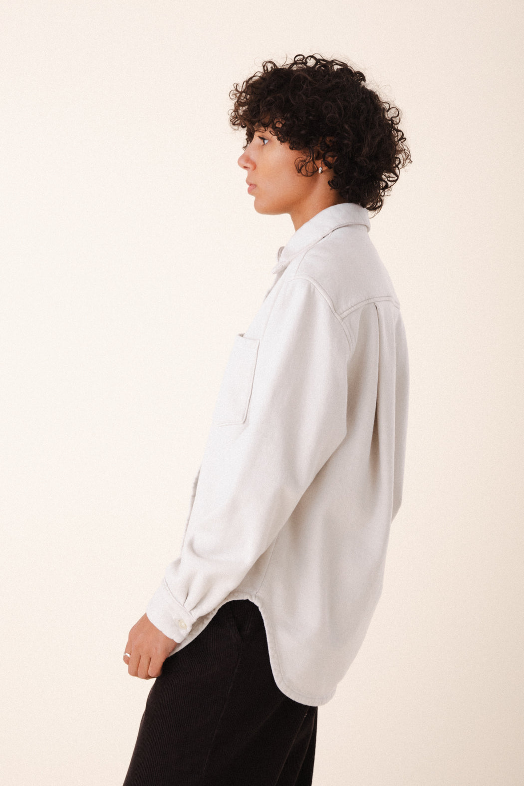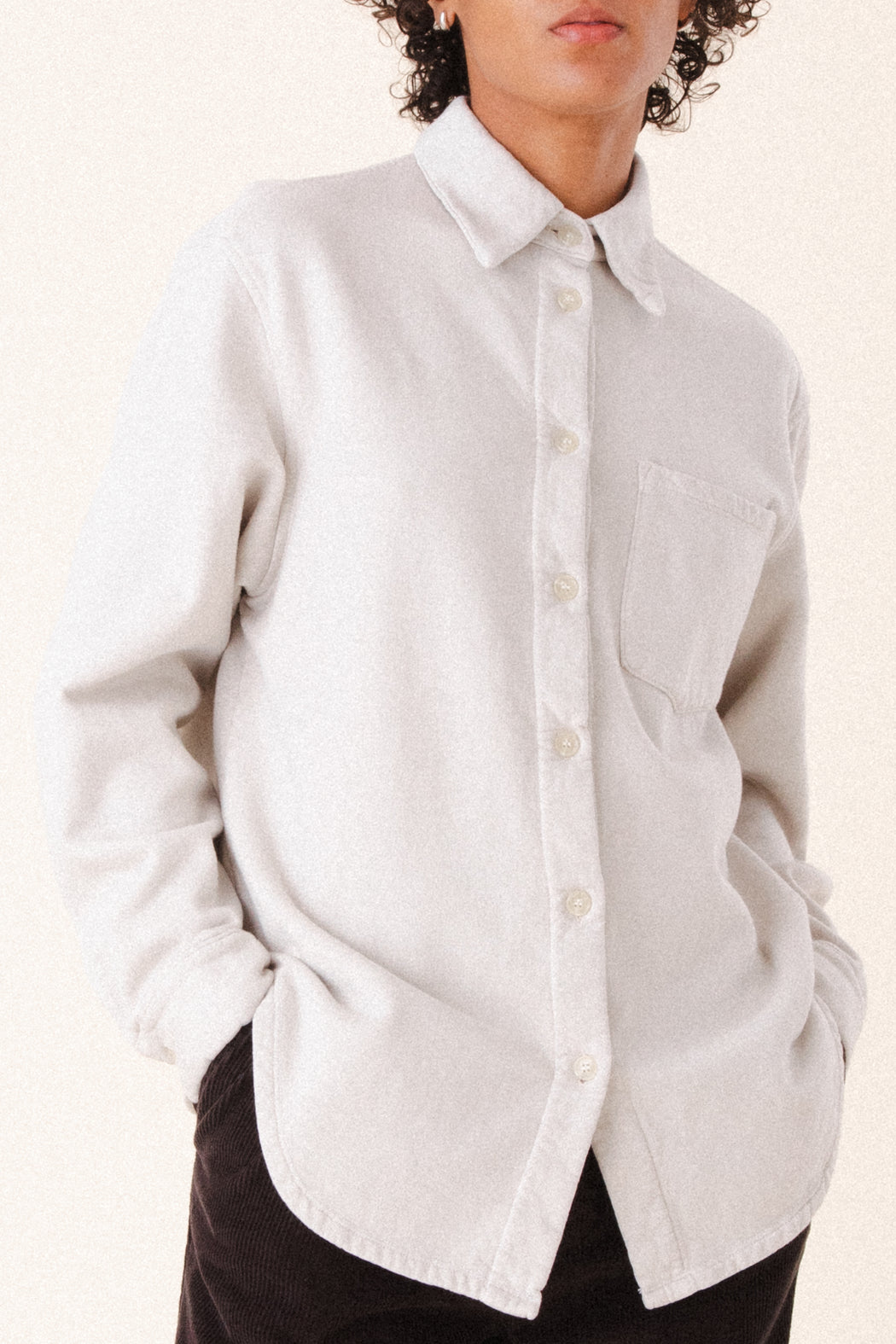 Taking inspiration from a prêt-à-porter shirt, we have evolved our Replica Shirt in a new textile to become the softest fleece shirt. Repeating beloved articles of clothing in unconventional textiles is a hallmark of our design methodology. This boxy knit shirt is composed of our beloved Organic Cotton Fleece that has been overdyed for softness and tonality.