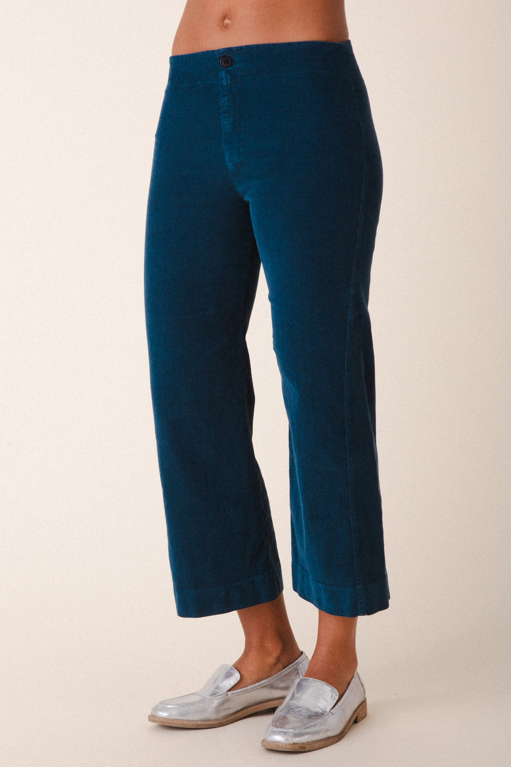 The corduroy version of our most popular pant, in a new and refreshed color palette. A mid-rise flared pant composed of high-stretch corduroy offers a shot of color to a classic silhouette. Back darts for shaping and a clean front suggest a minimal look that is also ideal for layering