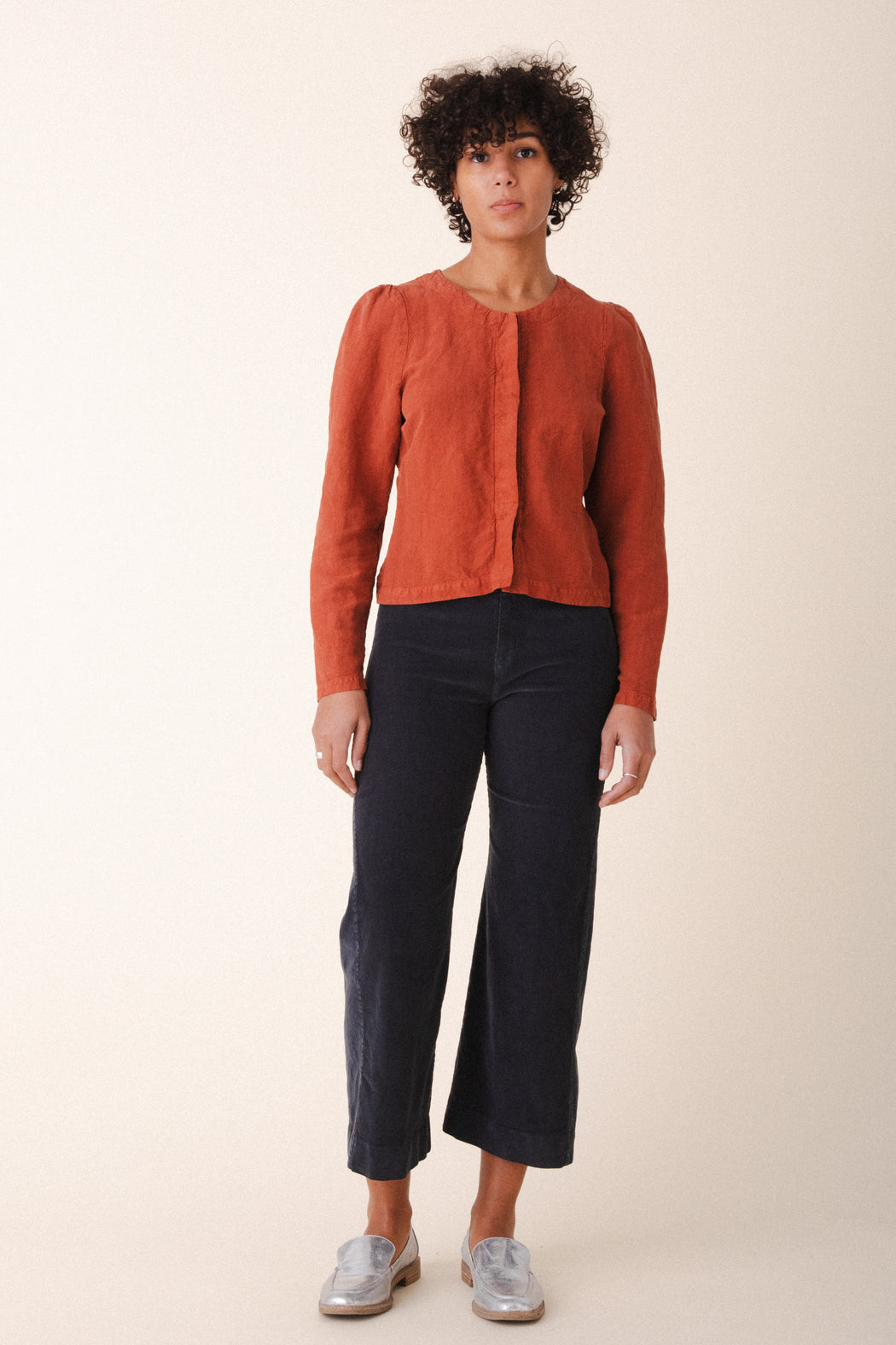 The corduroy version of our most popular pant, in a new and refreshed color palette. A mid-rise flared pant composed of high-stretch corduroy offers a shot of color to a classic silhouette. Back darts for shaping and a clean front suggest a minimal look that is also ideal for layering