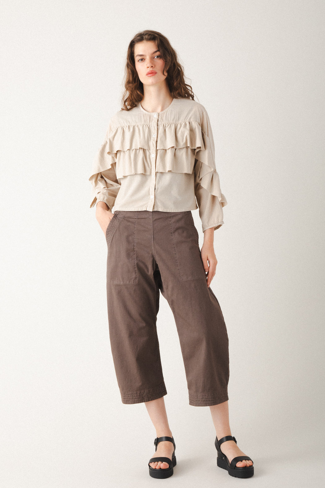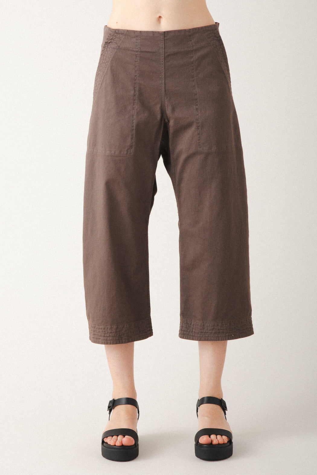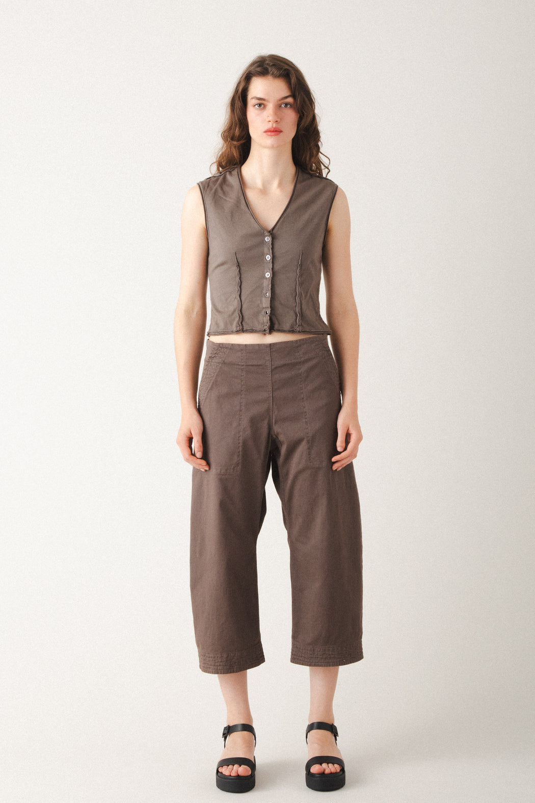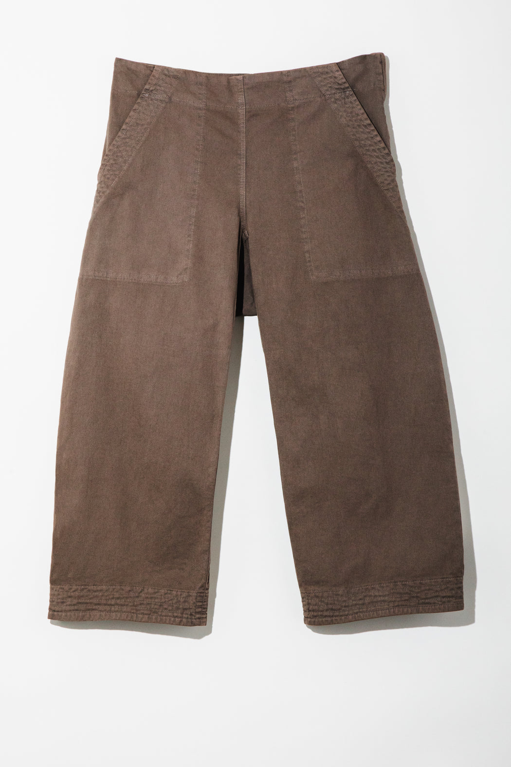 Inspired by martial arts uniforms, the Metric Pant is designed for freedom of movement and sharp architectural style. Quilted panels at the hem add structure and shape. A side zip and applied slash pockets create a clean, flat front—ideal for layering or tucking in tops. Crafted from cotton-spandex twill, this modernized exercise trouser brings comfort and stretch to a historically inspired silhouette.