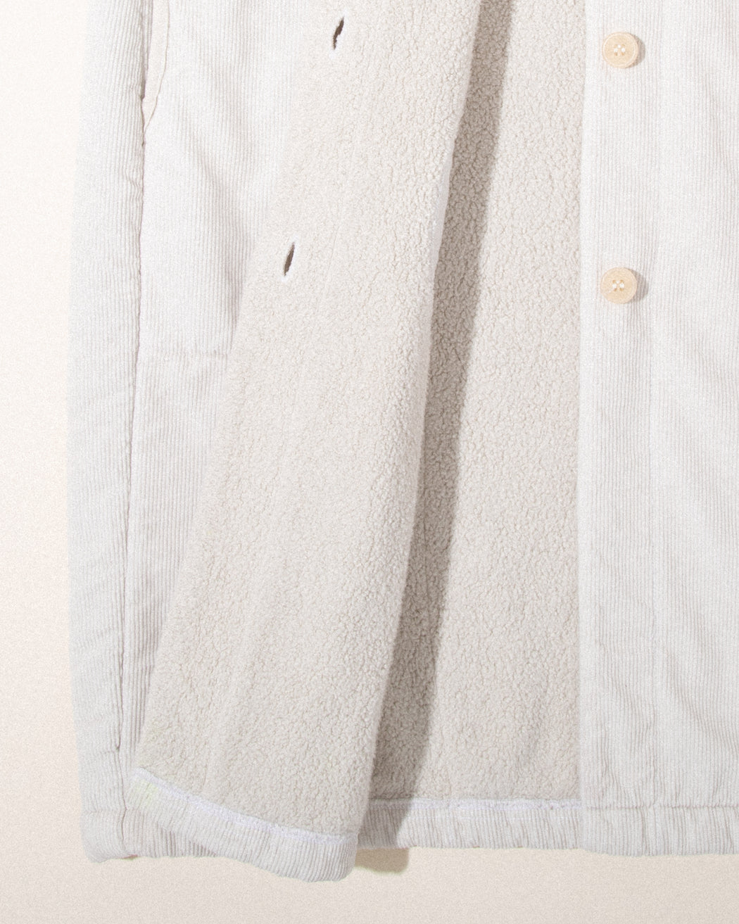 – Cotton Deadstock Corduroy shell with 100% Organic Cotton shearling lining