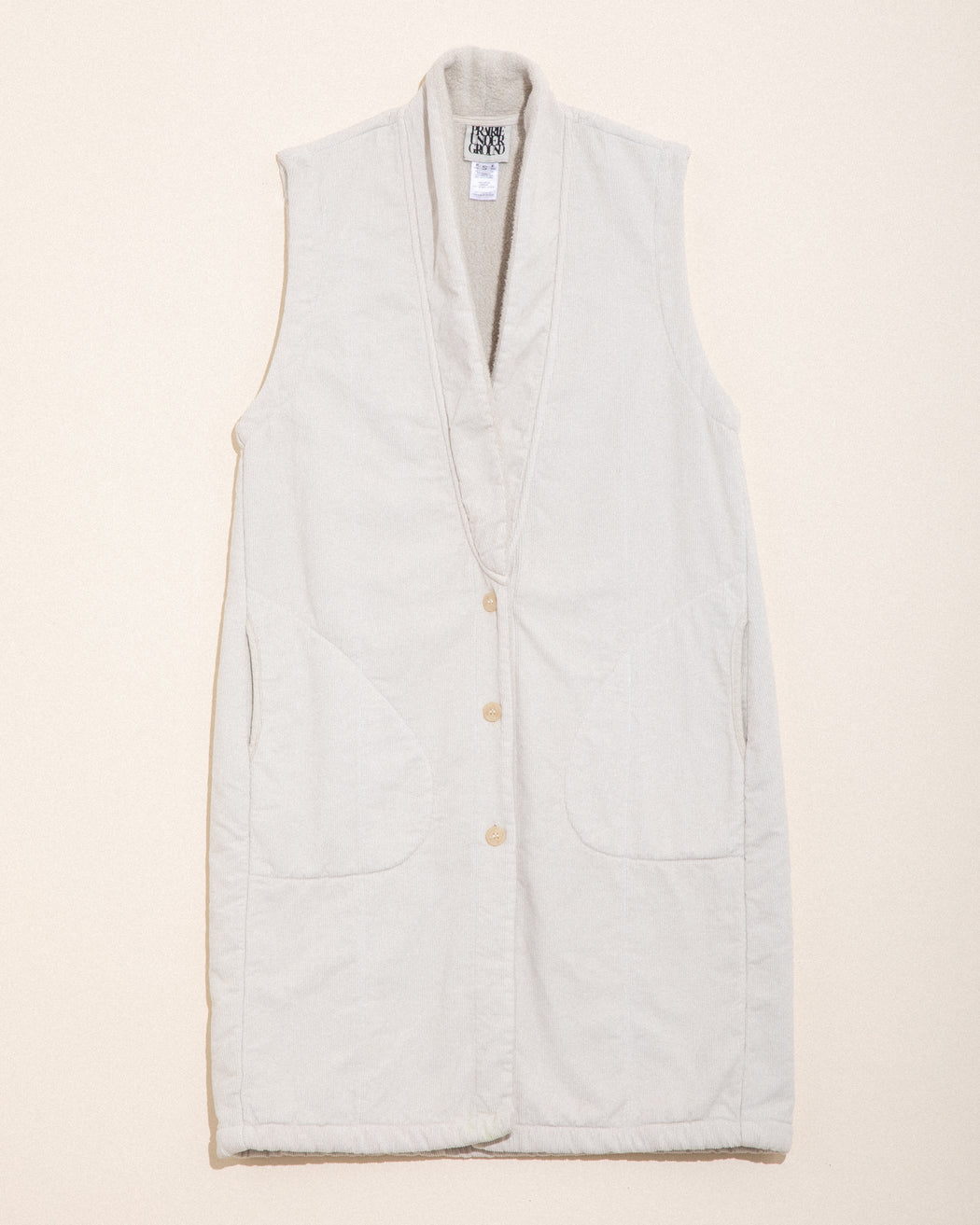 Free your arms with a vest, and make it three-quarters in length for the ultimate core warmth. The Fireside Vest will diminish the chill of drafts in winter while pulling together an ensemble that is equal parts elegance and industry. Excellent layered over or under your winter coat, this quilted, plant-based puffer will also be put to good use in every season in the Pacific Northwest.
