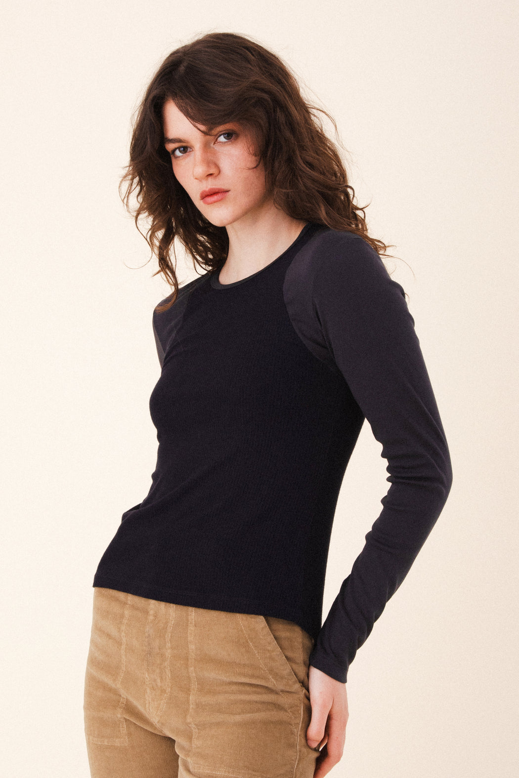 A lightweight long-sleeve layer with subtle texture and everyday ease. Made by combining our organic baby-rib with silky-soft rayon spandex poor boy rib, the Automatic Crew is a foundational layer that supports your rhythm, whether you're grounded or on the move.
