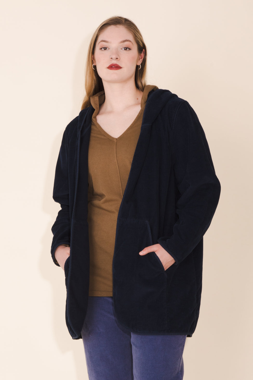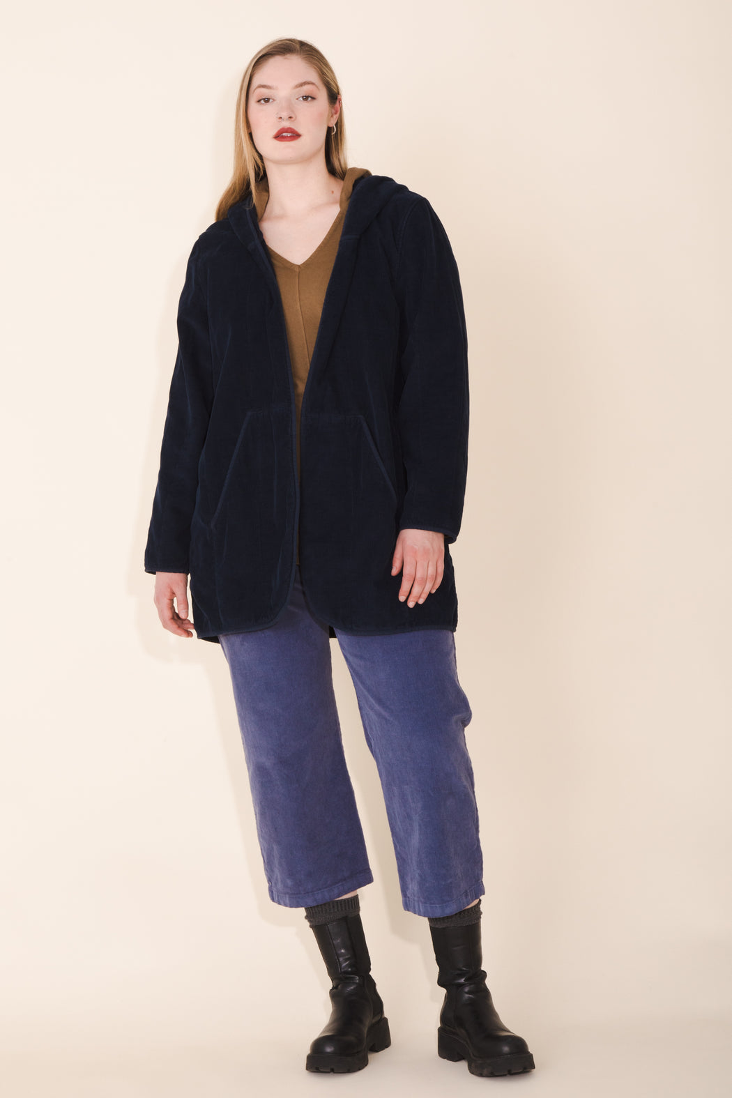 First offered in 2015, the Hover Coat has been updated with a Corduroy shell quilted to an organic fleece lining. The ultimate woven hoodie has a plush interior with a clean face. Loose sleeves make it the perfect top layer for a number of ensembles while the deeply minimal front pockets provide ample task storage. Offered in several of our bestselling colors to coordinate beautifully with your Prairie favorites from years past.