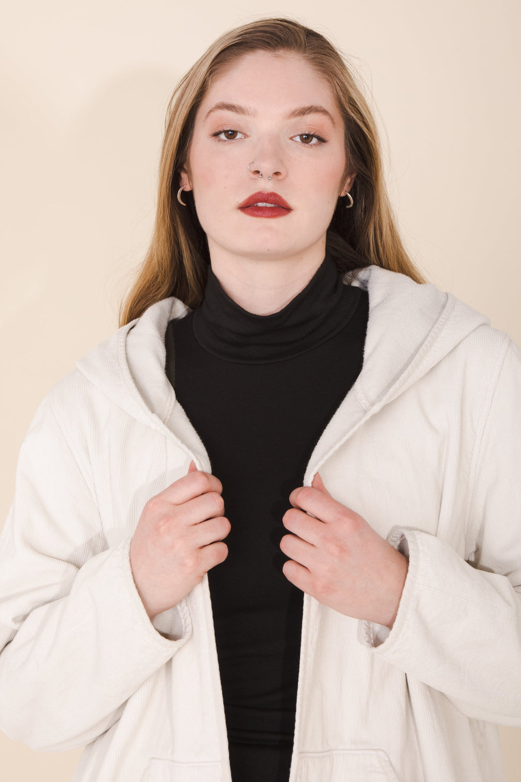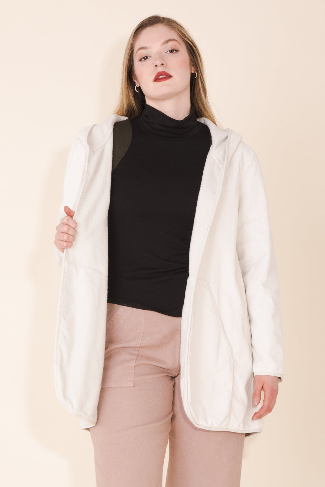 – No closure hooded coat
