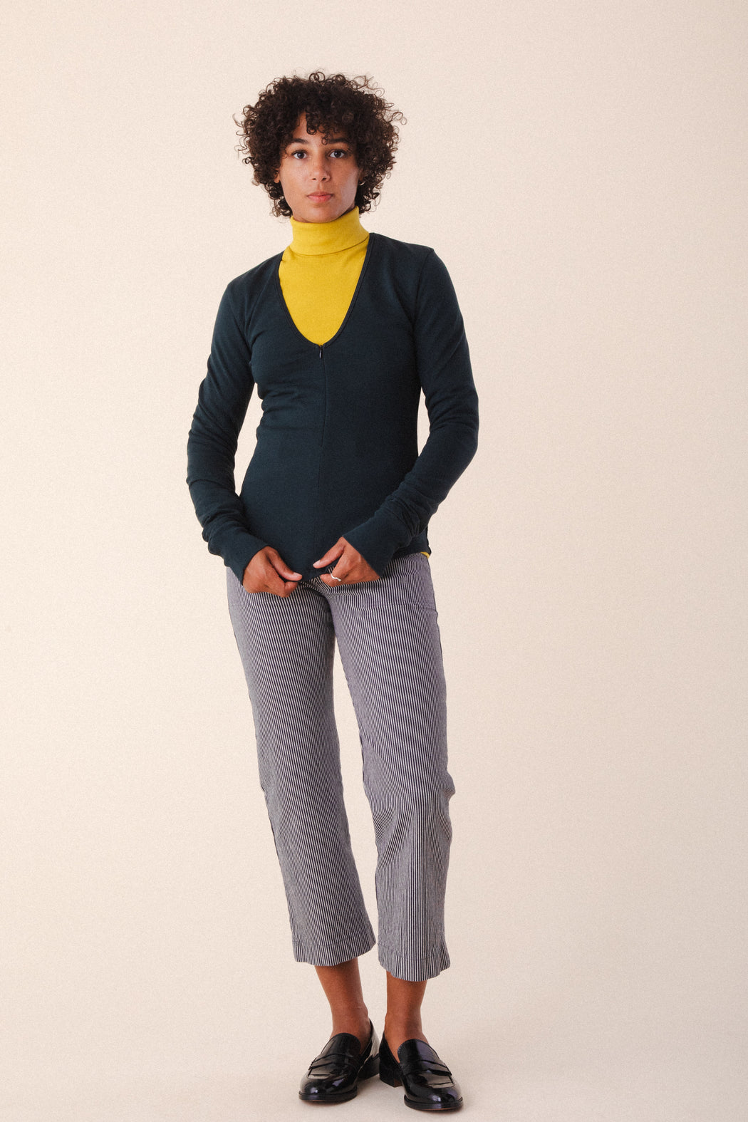 An elegant V-neck sweatshirt with an invisible zip to impart a fitted look. Finished with extra-long sleeves and a tailored shape for ultimate warmth and luxury.
