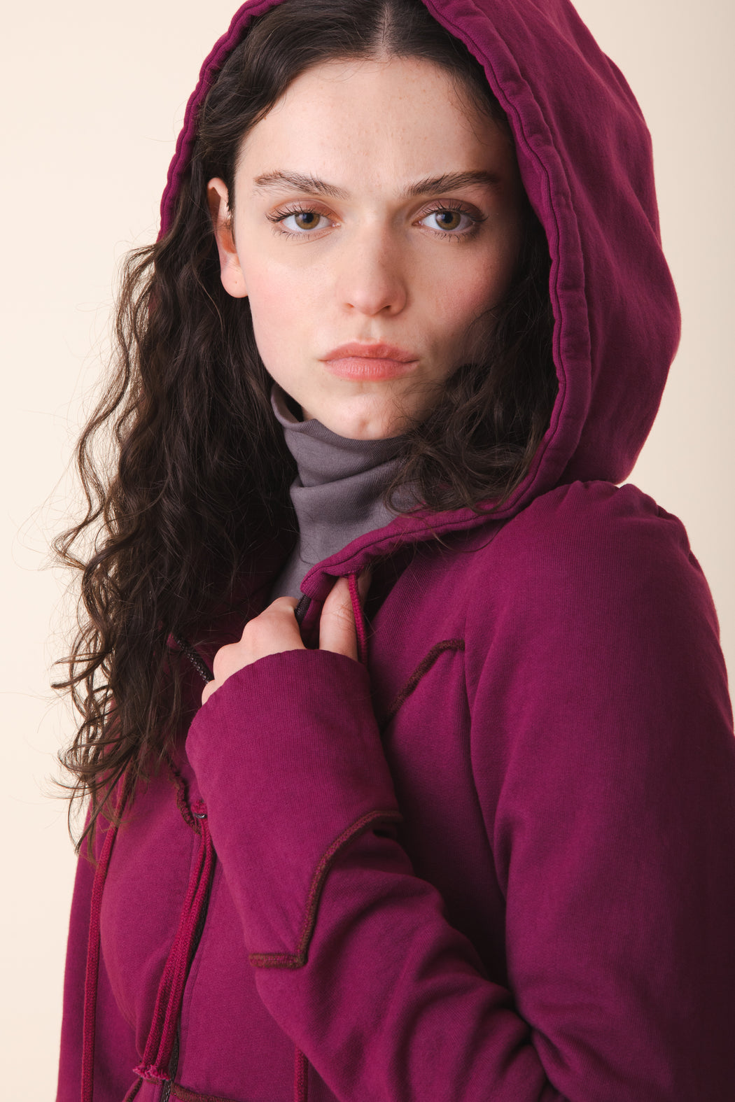 Our Prairie Hoodie is a web exclusive style originally designed with our Fall 2005 collection. This sustainable style is recreated once a year as a website exclusive. This eponymous organic cotton hoodie has a fit and flare silhouette with exposed serge seaming on the bodice, cuffs, and hem.