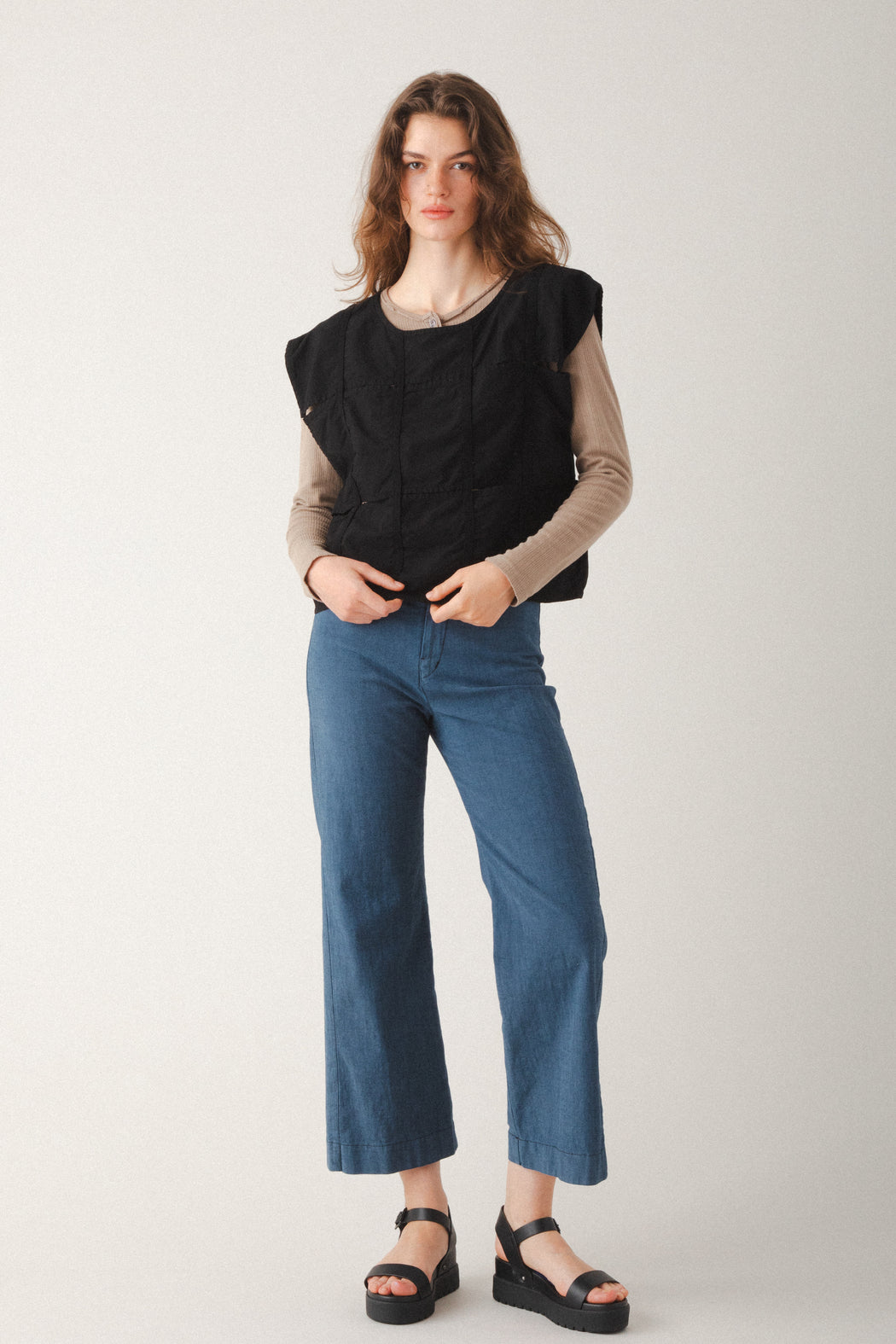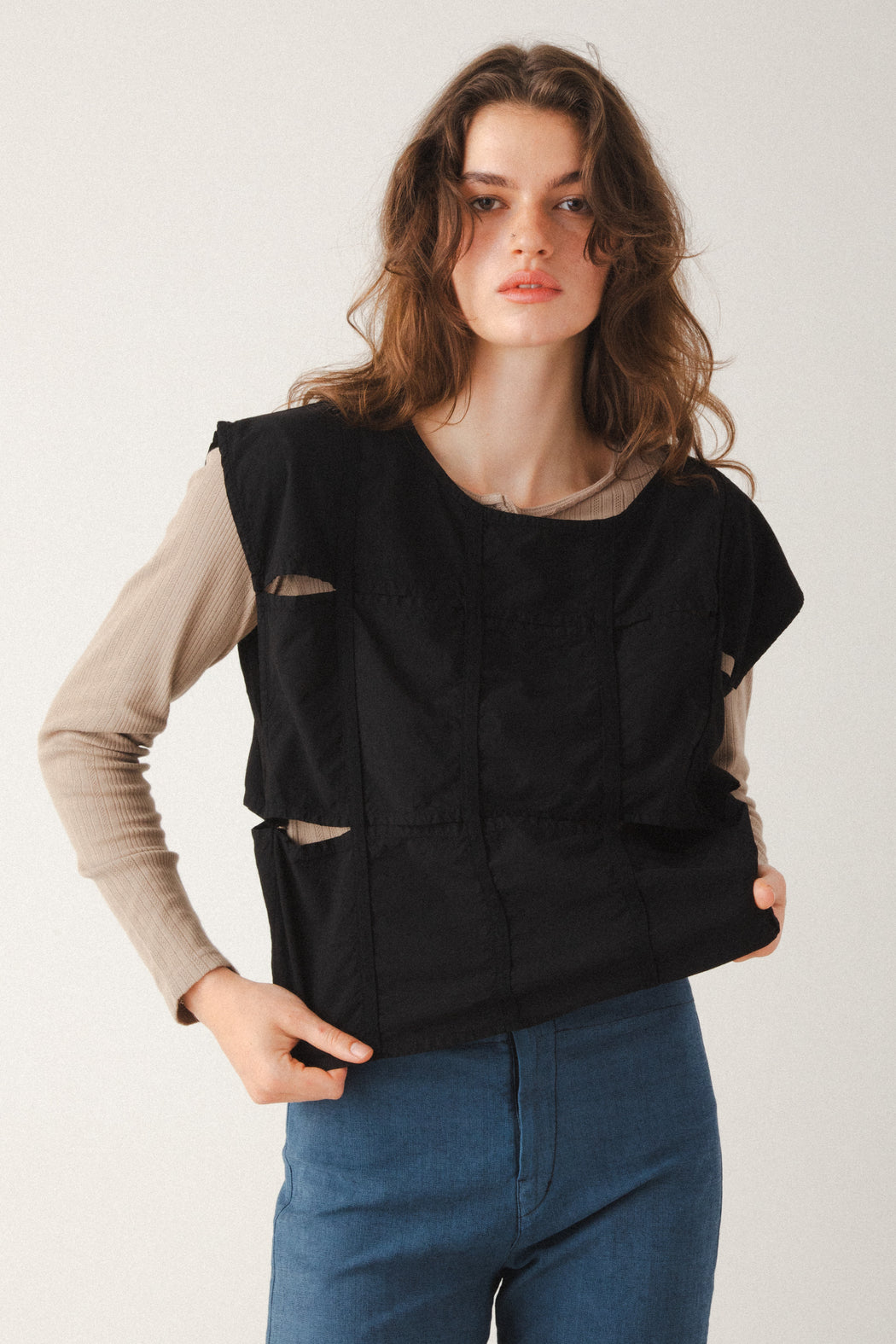 Inspired by parachutes and hang gliders, the Crosswind Top is a distinctive piece that blends texture, movement, and effortless style. Crafted from finished panels of organic cotton muslin, joined with soft cotton tapes, it features a light, airy silhouette that’s both sculptural and wearable. The boxy cut and short cap sleeves make it an ideal warm-weather top — relaxed yet elevated. Pair it with wide-leg pants for a laid-back, artful look that stands out without trying too hard.