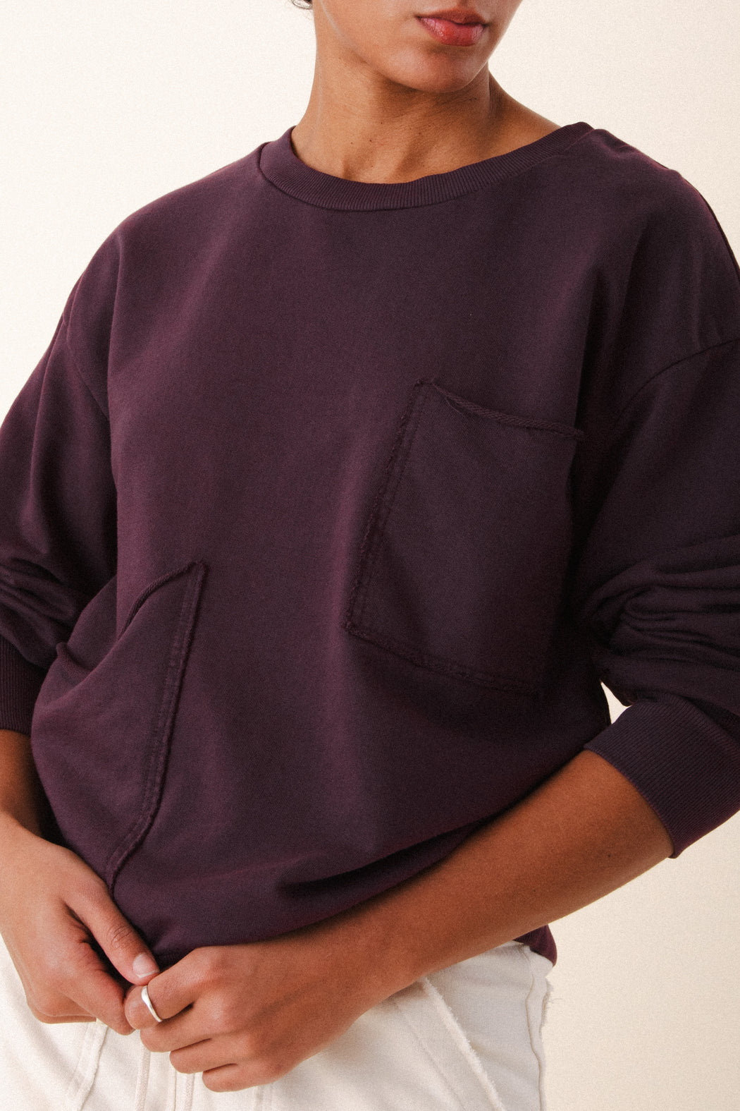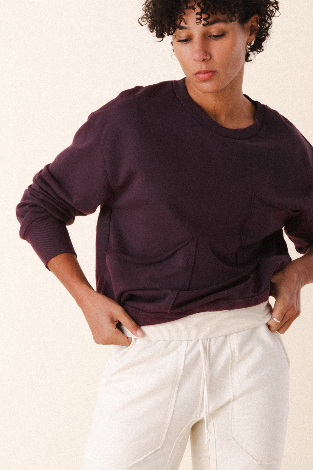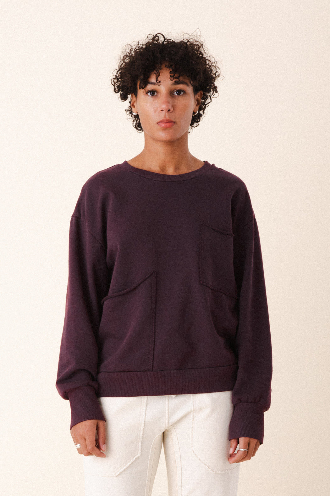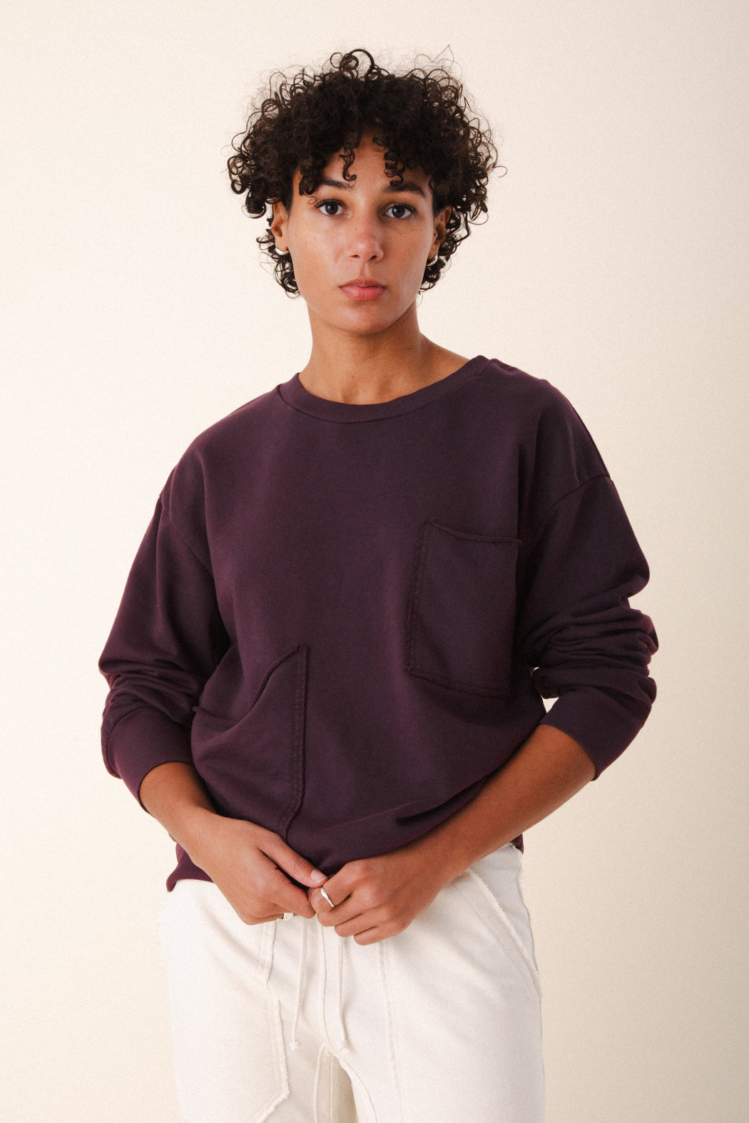 – Slightly oversized pullover crewneck
