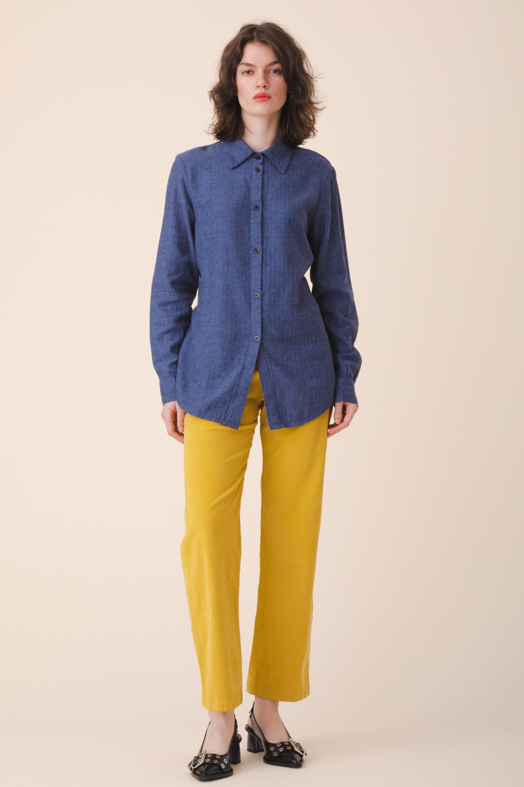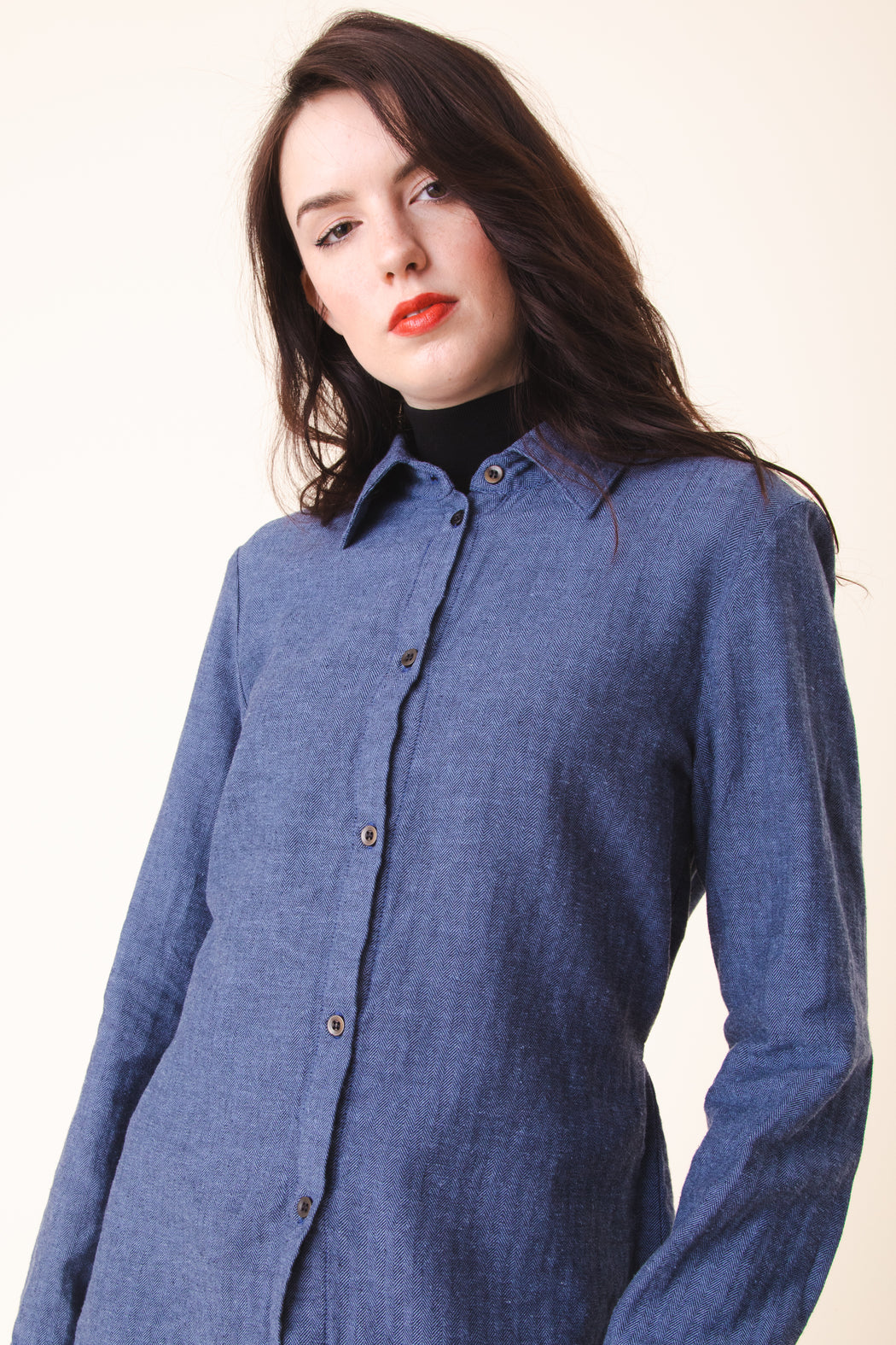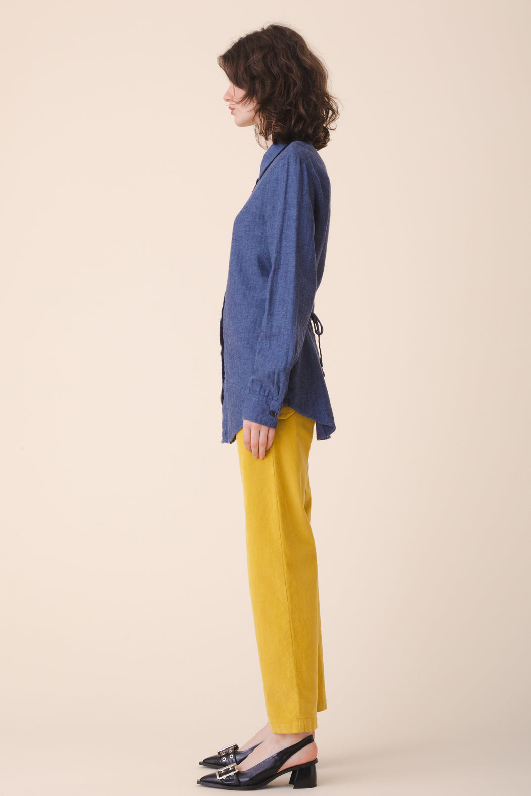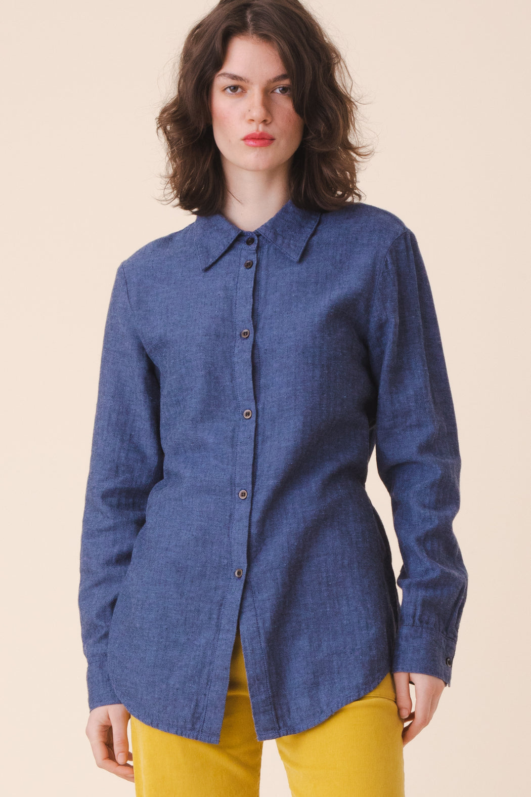 After a series of menswear inspired, oversized button front shirts we felt it was timely to offer something more variable and tailored. An oversized look may still be achieved by sizing up, but if you want a perfectly tailored blouse with an adjustable back tie to define the curves of your body, the Everymood will provide that precision. It has been rendered in a novelty hemp blend in limited edition.