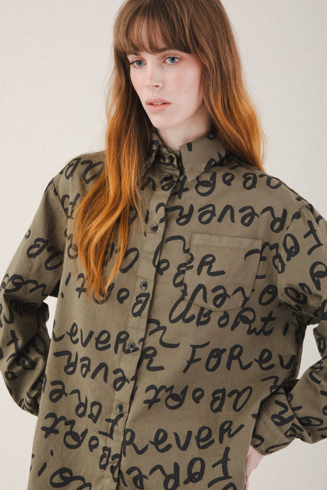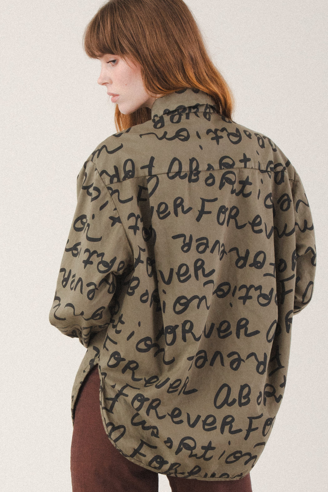 We’re co-creating a limited-edition organic cotton sateen version of Prairie Underground’s button-down Replica shirt with a repeating “Abortion Forever” in Doug’s handwriting, as designed by SYA. This piece of fashion merges and celebrates the overlapping values and aesthetic of these three creative entities. All proceeds benefit SYA’s continued commitment to normalizing abortion and elevating safe paths to access, regardless of legality.