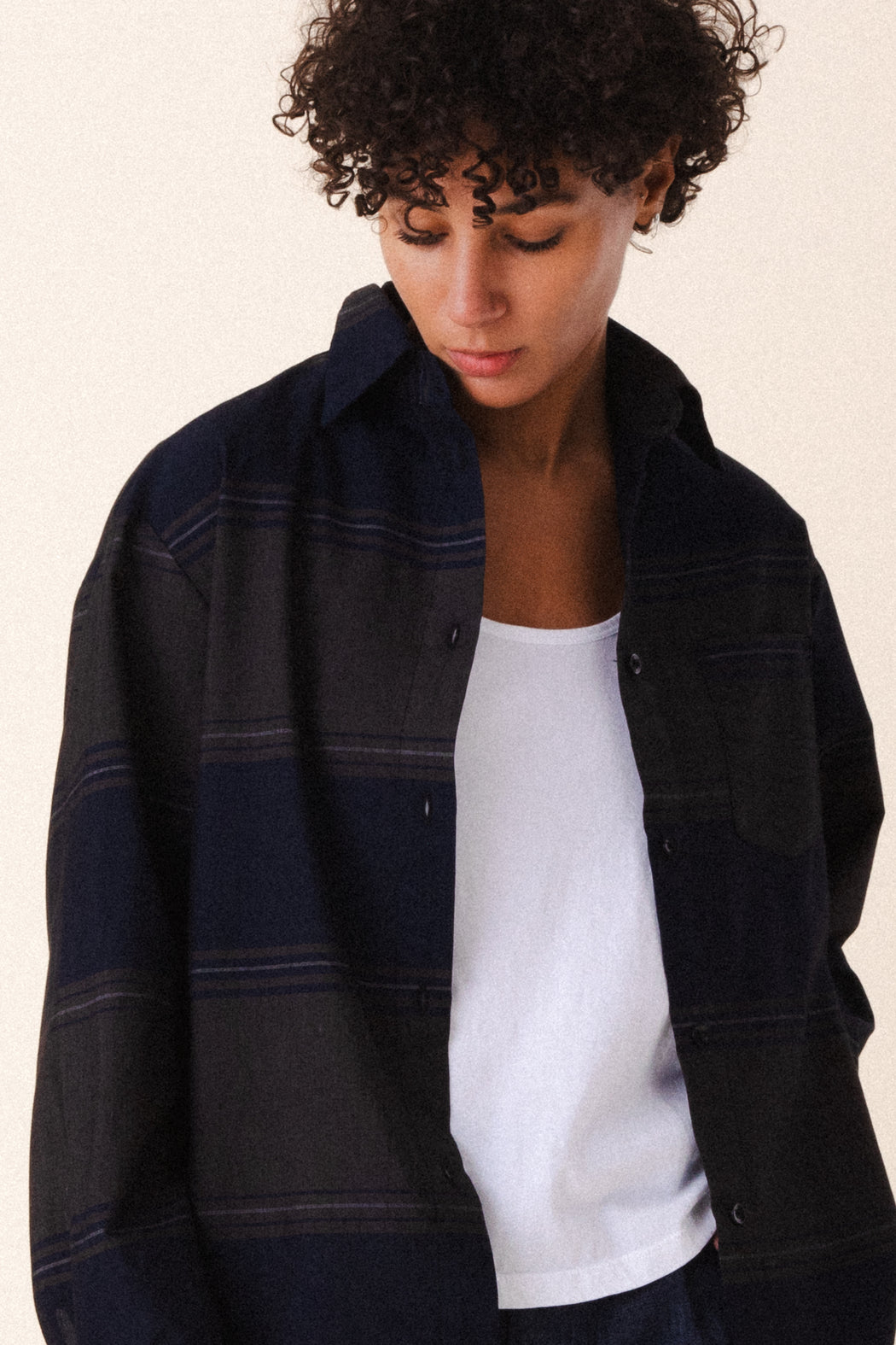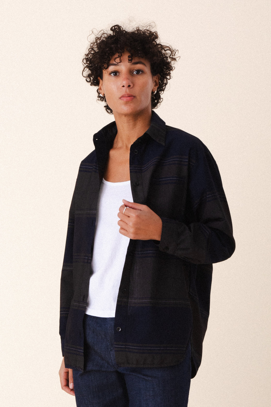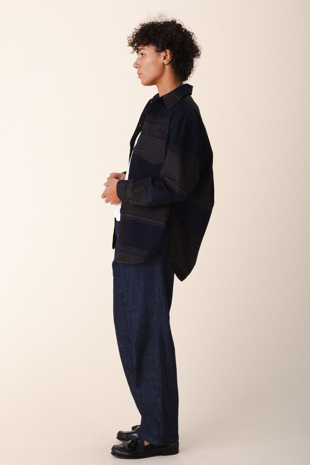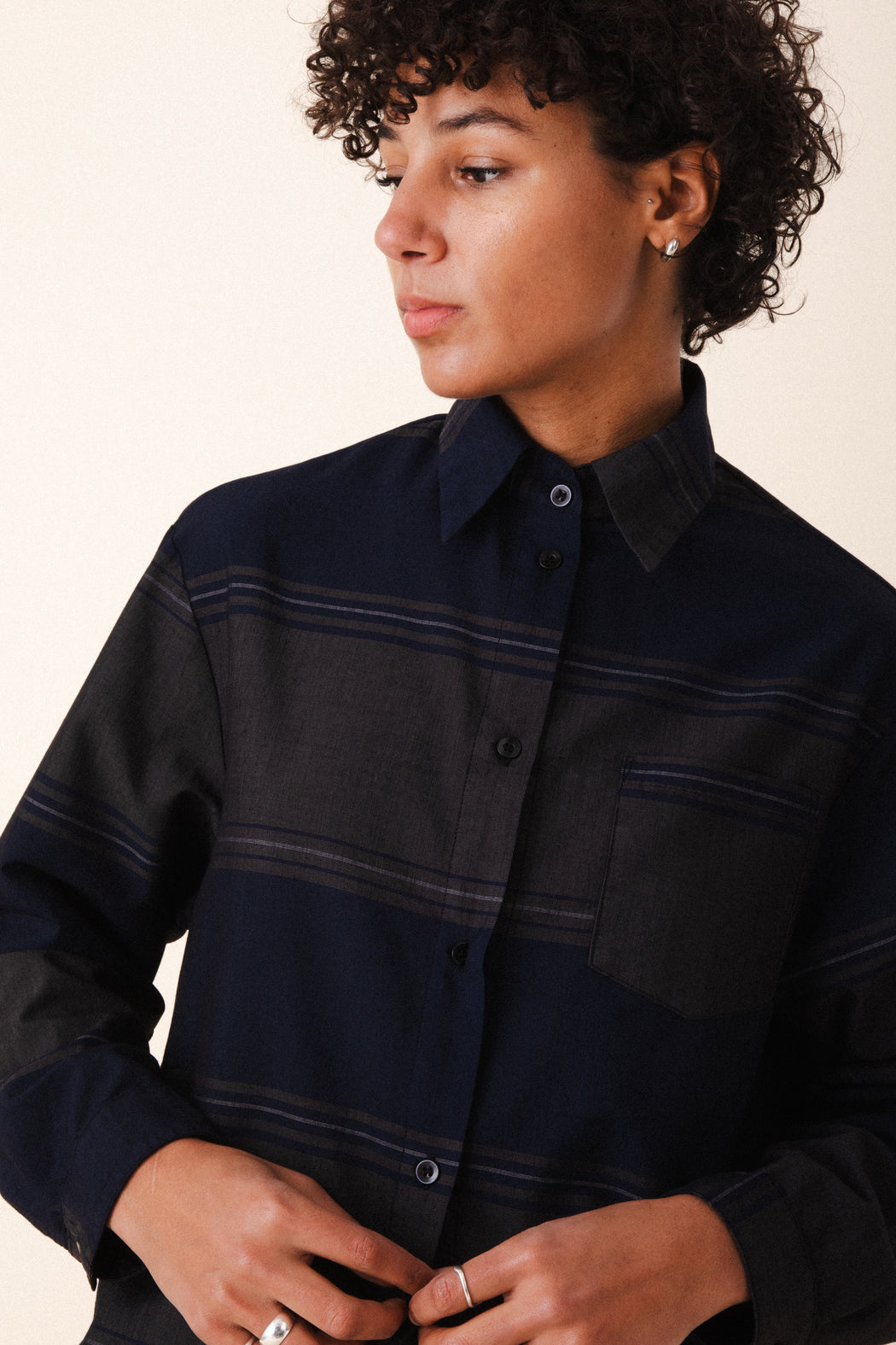 One of the first things you learn in fashion school is how to knock off a garment. Recreating or copying articles of clothing is one of the most compelling conversations in contemporary design.  Ideally, we are learning something about our craft while leaving our imprint on the new garment. This boxy dress shirt suggests pre-laundered ease with the powerful silhouette of prêt-à-porter.