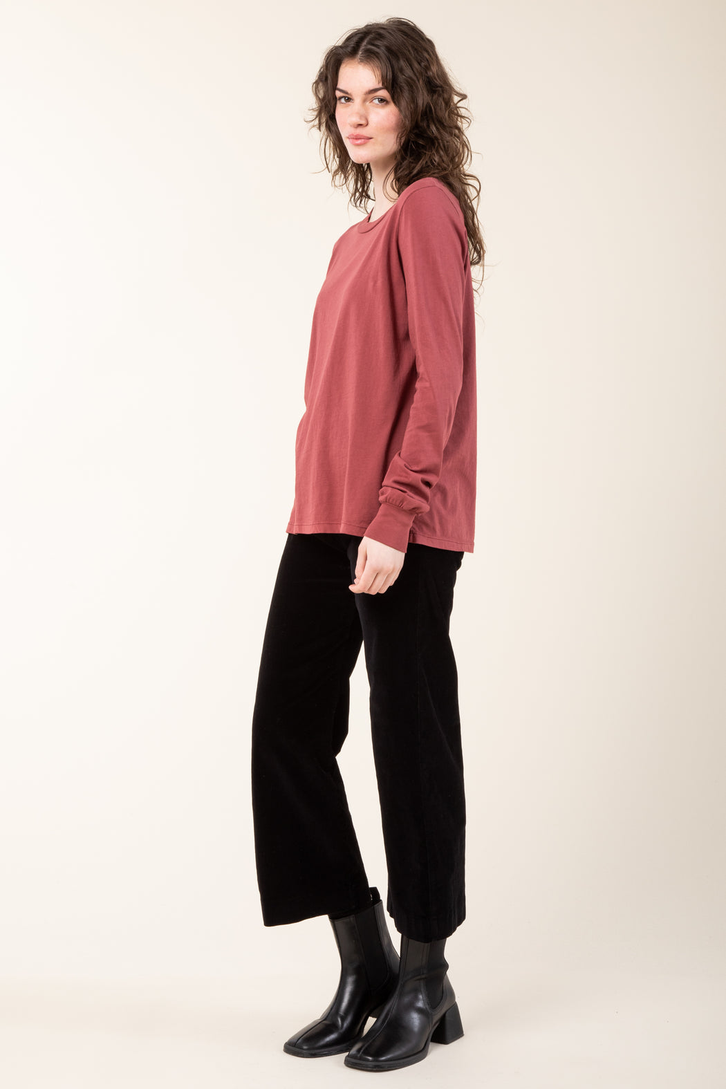 Our interpretation of the perfect baggy, long sleeve t-shirt. Our wardrobe in the 90’s revolved around this essential layer tucked into baggy pants or worn loose over shorts. After a pandemic year, we’re not rushing back to tight anything. Our premium organic cotton jersey wears beautifully, this t-shirt will function reliably for years.