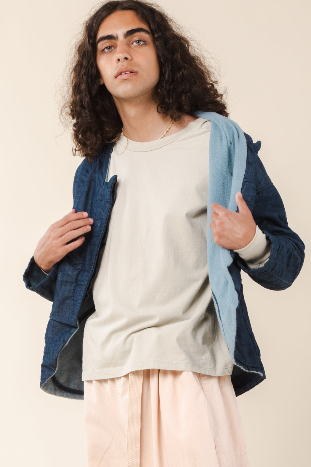 Our interpretation of the perfect baggy, long sleeve t-shirt. Our wardrobe in the 90’s revolved around this essential layer tucked into baggy pants or worn loose over shorts. After a pandemic year, we’re not rushing back to tight anything. Our premium organic cotton jersey wears beautifully, this t-shirt will function reliably for years.