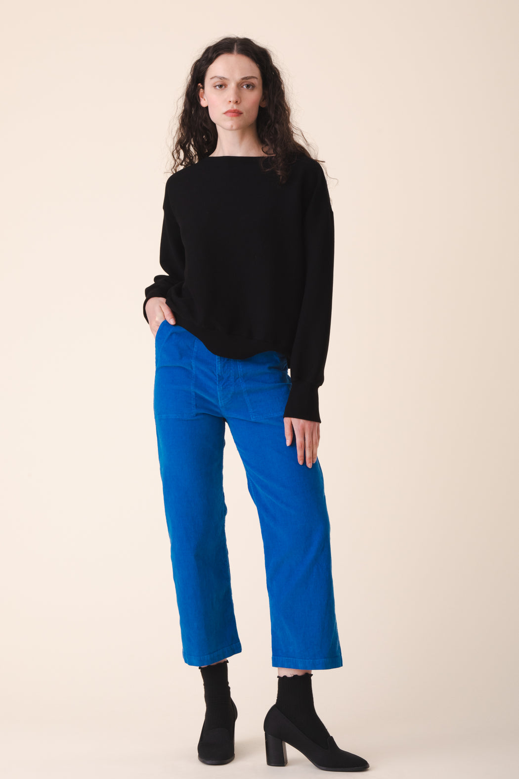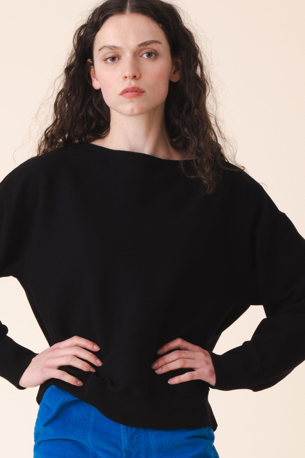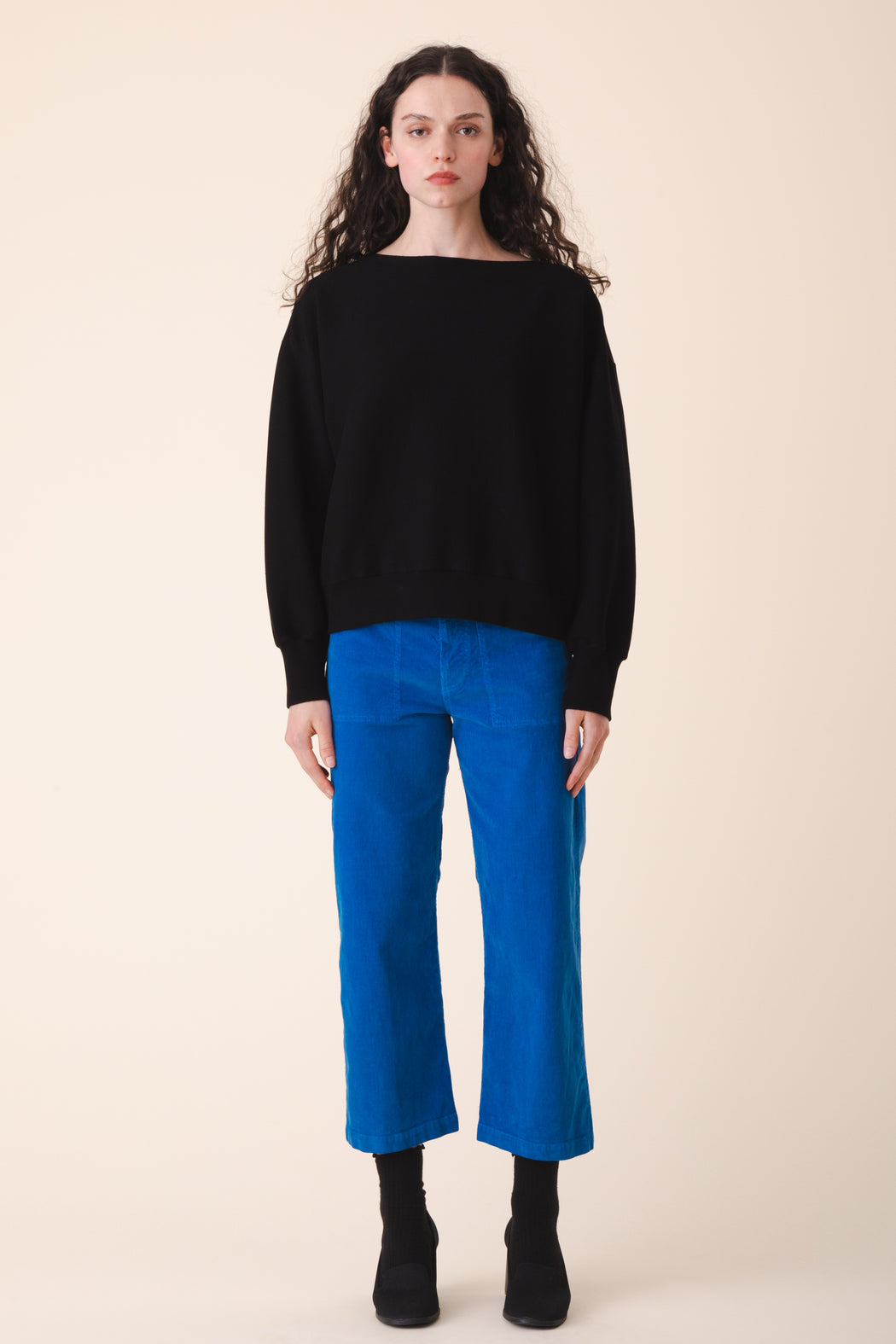 A move from the vertical to the horizontal creates a sense of volume and motion at the same time. A Sportif Sweater that is tailored, rigorously minimal, and emphatically spherical. Designed to be worn routinely, this clean, boat neck is a light and buoyant layer in winter months and the perfect sweatshirt for the rest of the year.