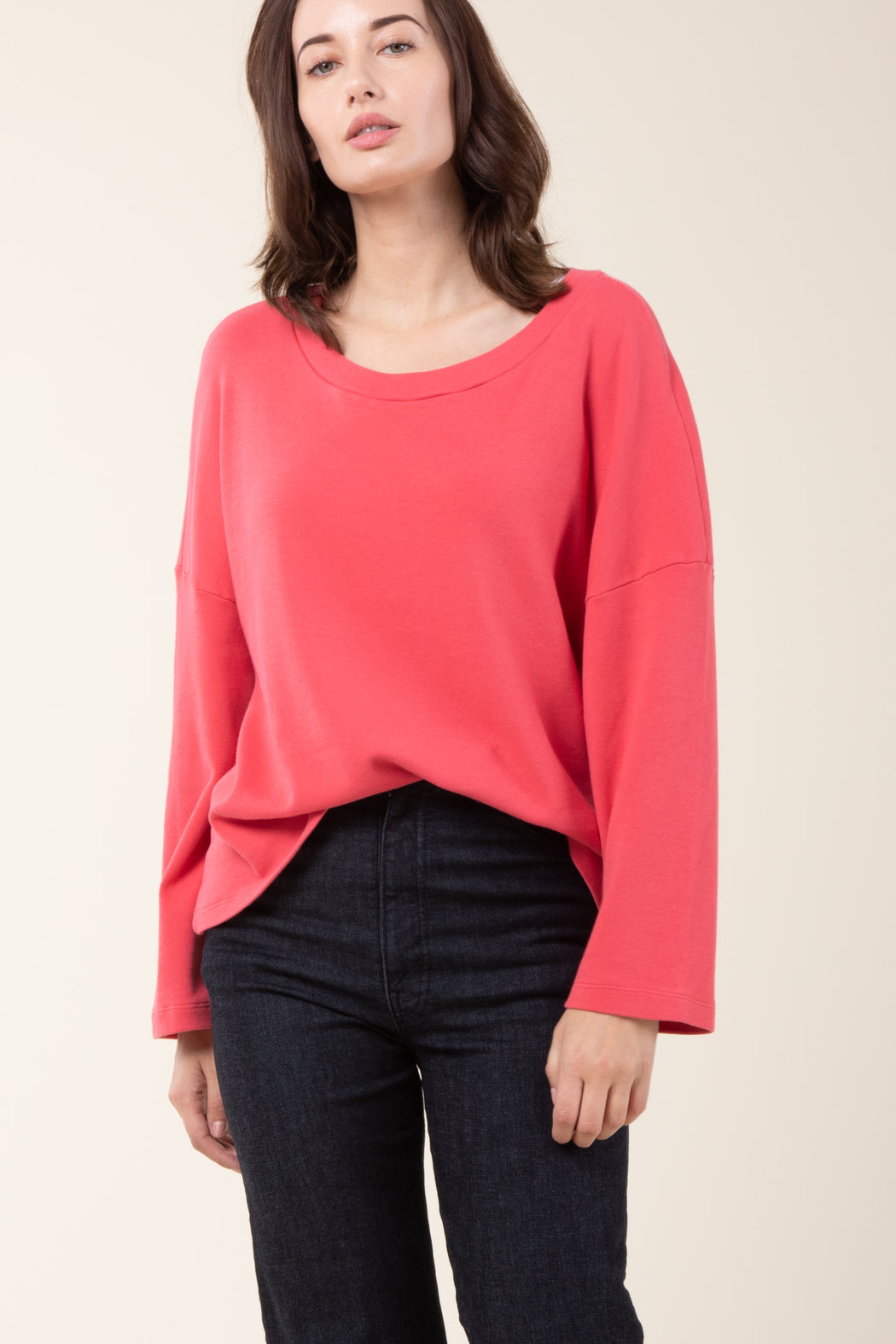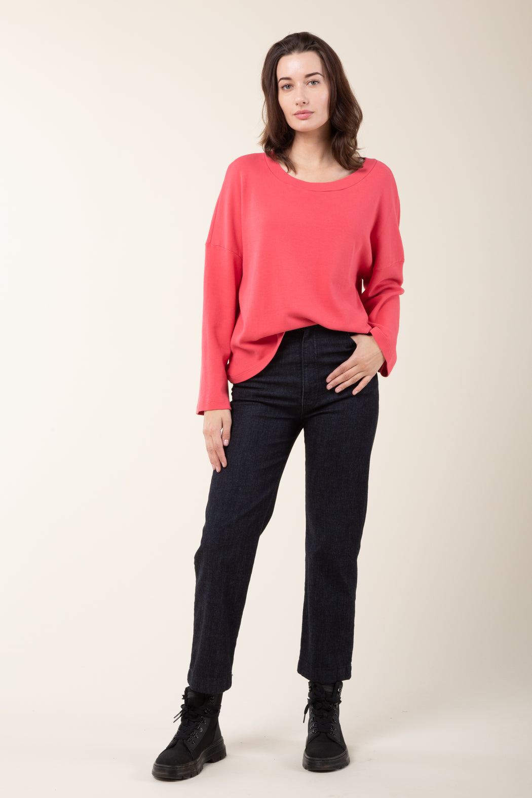 Constructed in a thicker, softer interlock knit (think baby clothes). This t-shirt was designed to address the discomfort of the past year. Overlong sleeves slow you down and turn your thoughts inward. The elegant neckline and oversized shape allow it be worn in different ways and in different circumstances.
