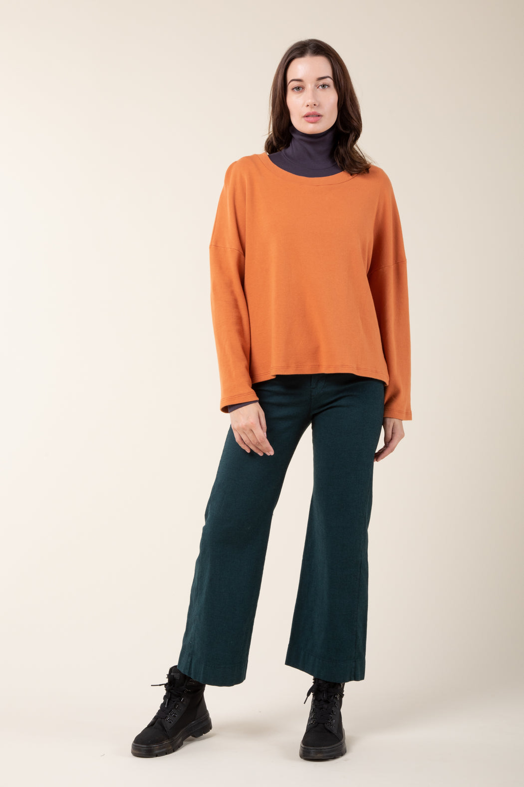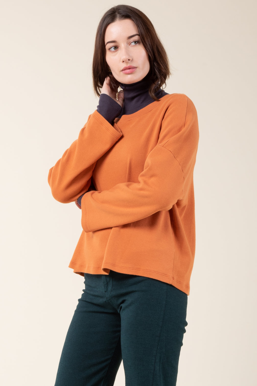 Constructed in a thicker, softer interlock knit (think baby clothes). This t-shirt was designed to address the discomfort of the past year. Overlong sleeves slow you down and turn your thoughts inward. The elegant neckline and oversized shape allow it be worn in different ways and in different circumstances.