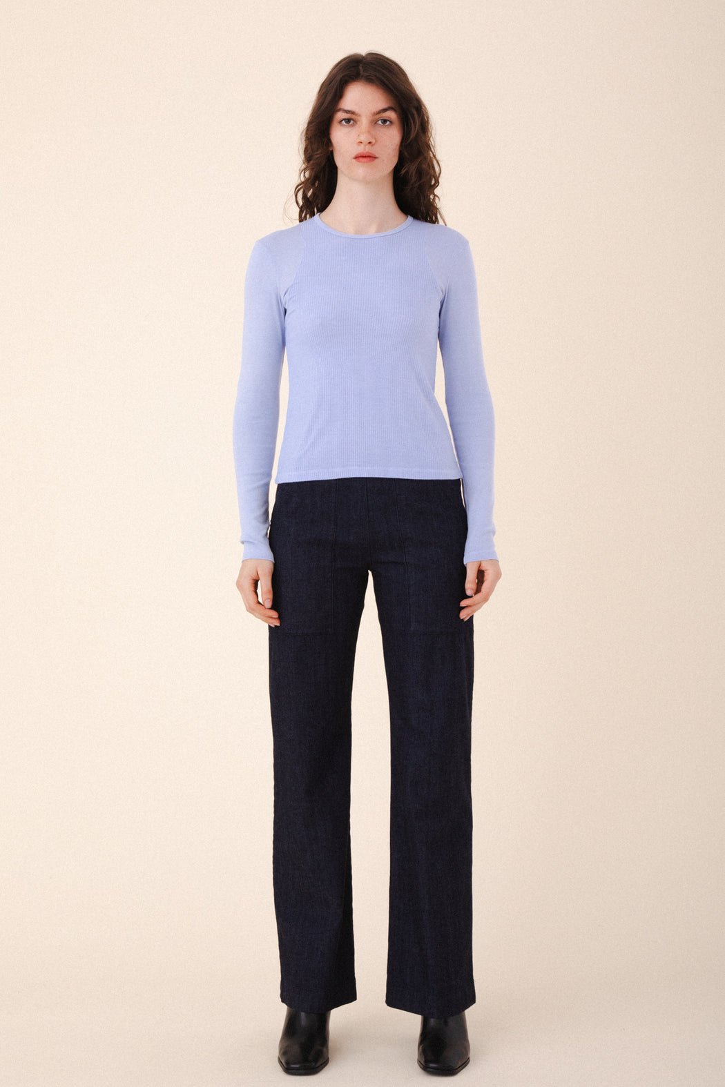 A lightweight long-sleeve layer with subtle texture and everyday ease. Made by combining our organic baby-rib with silky-soft rayon spandex poor boy rib, the Automatic Crew is a foundational layer that supports your rhythm, whether you're grounded or on the move.