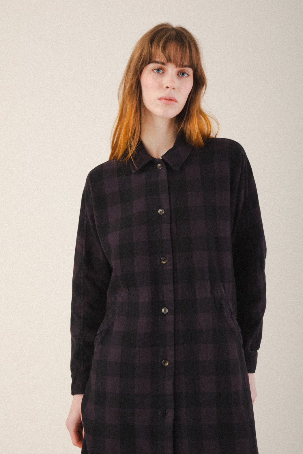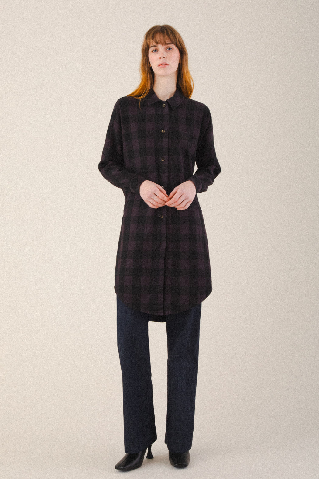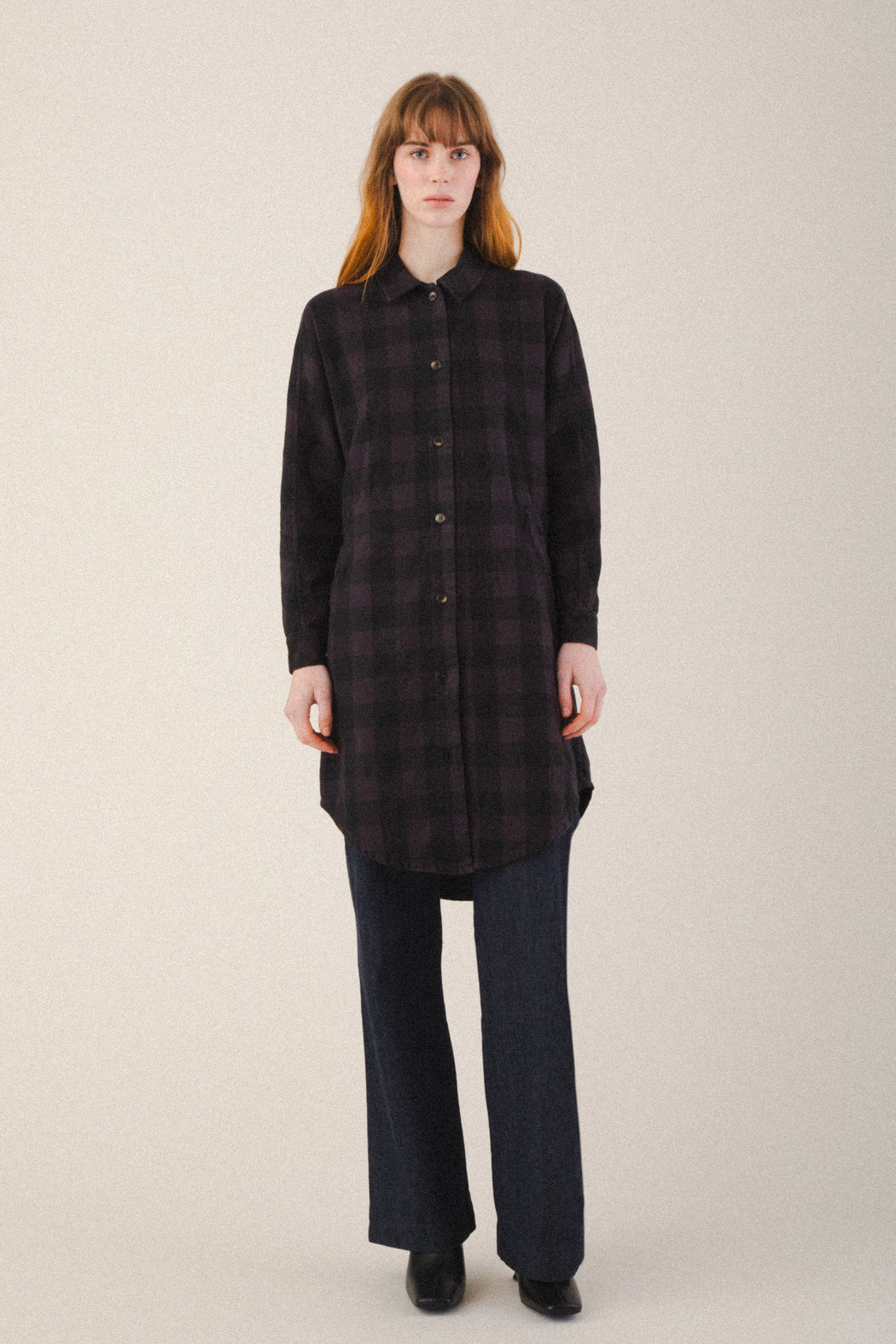 This work-a-day button-down flannel dress is the pinnacle of productivity and pleasure. Stay comfortable and agile in this classic dress that will become softer each time it is washed. Don’t be fooled that this is like any other shirt-dress, this piece comes packed with details: dual front welt pockets, underarm gussets and soft elastic waist gathers set this dress apart. Whether worn alone or with pants, it is a versatile piece that will take you from the beginning of fall until the end of spring.