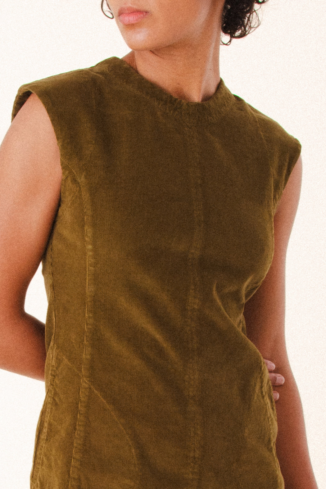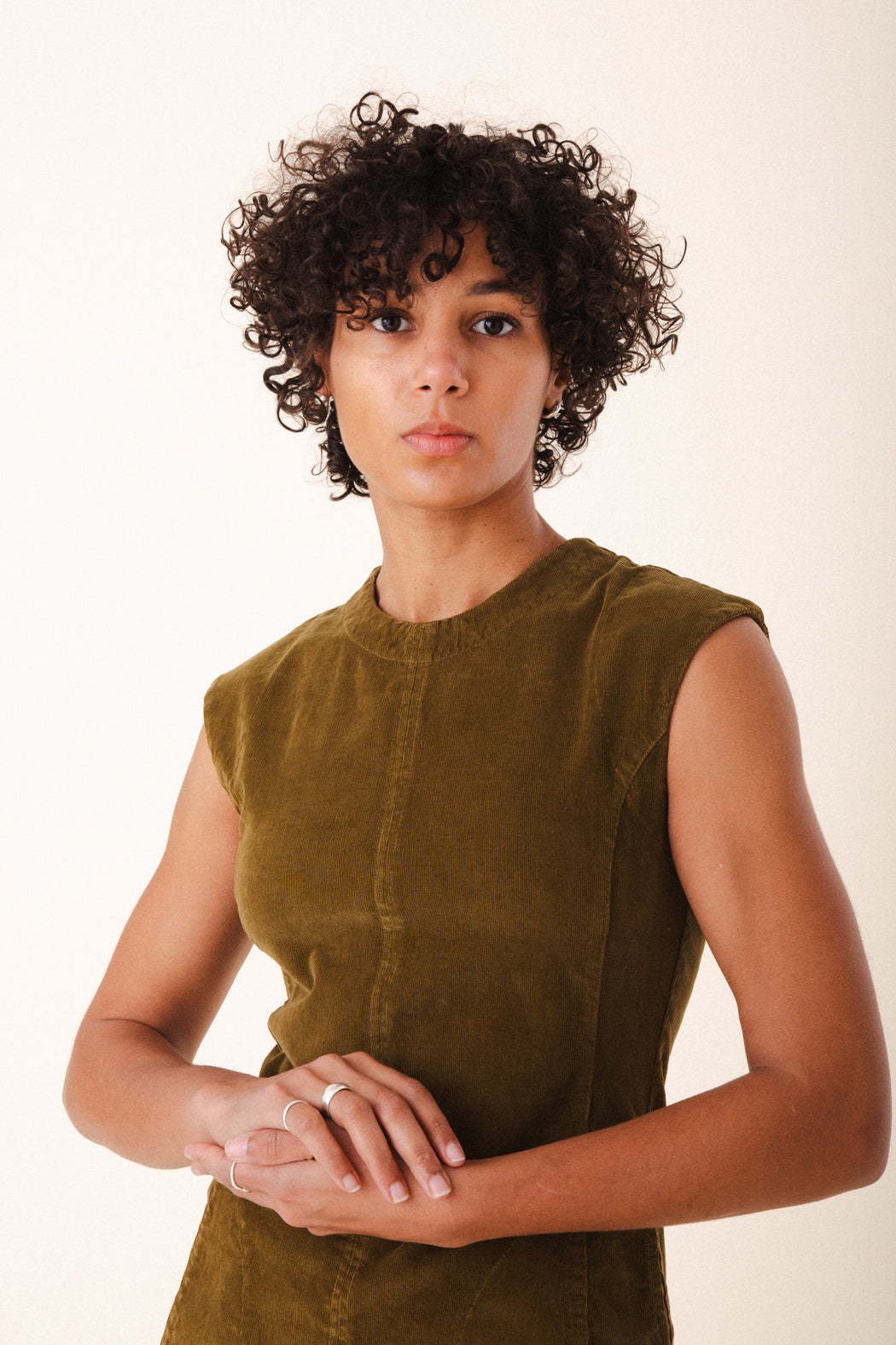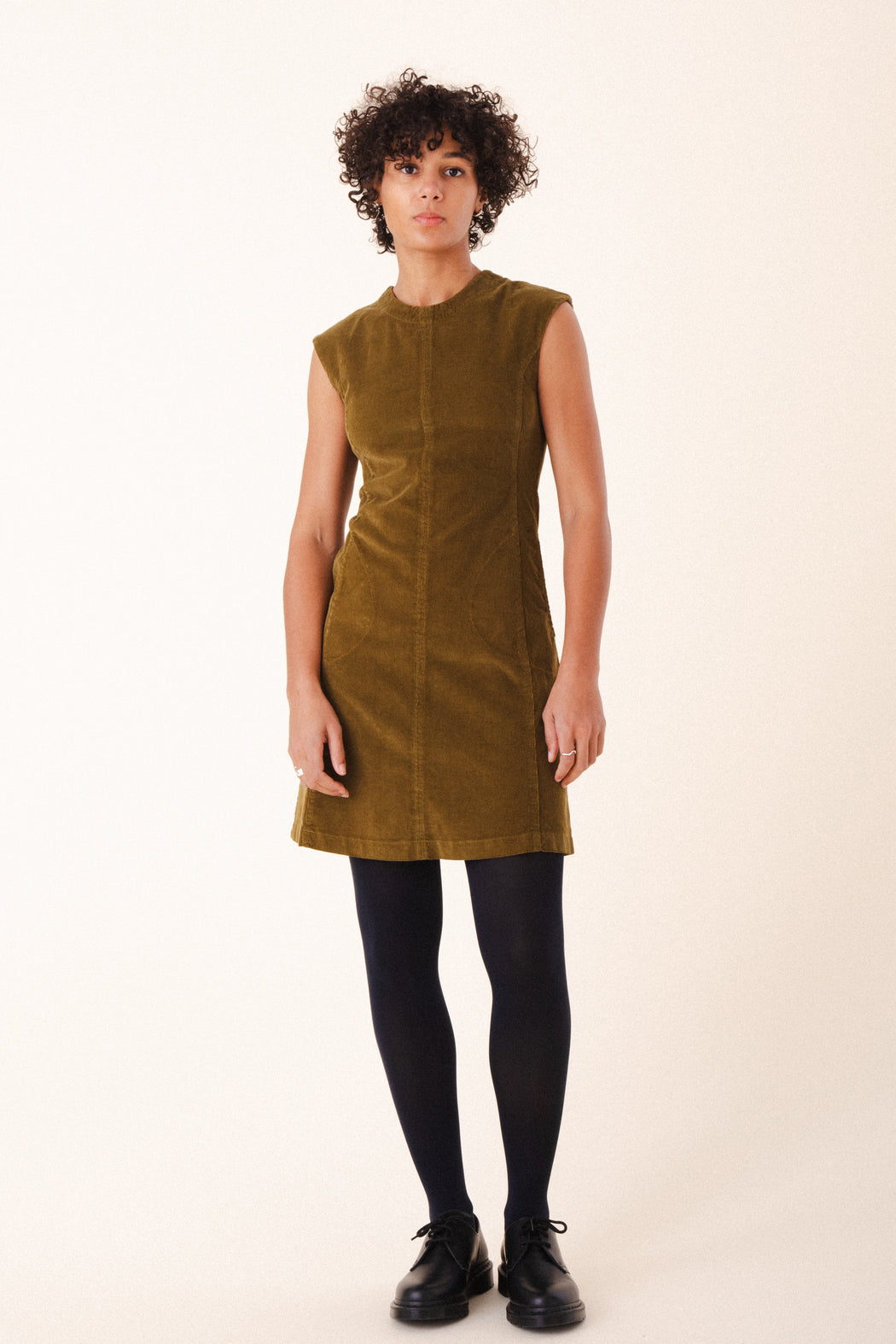 The perfect little corduroy dress. Feel Form is universally flattering with classic princess seams at the front and back. A slight exaggeration of shoulders keeps the silhouette fresh and strong for today. With side seam pockets and topstitching throughout, this workhorse dress is a timeless classic.