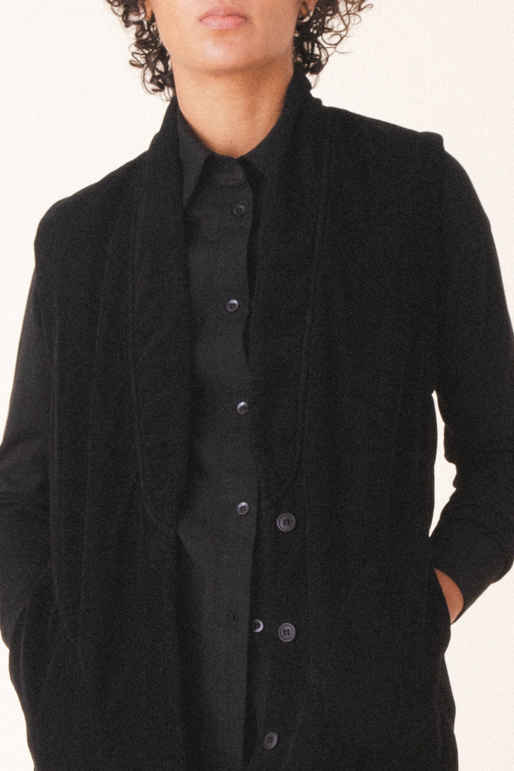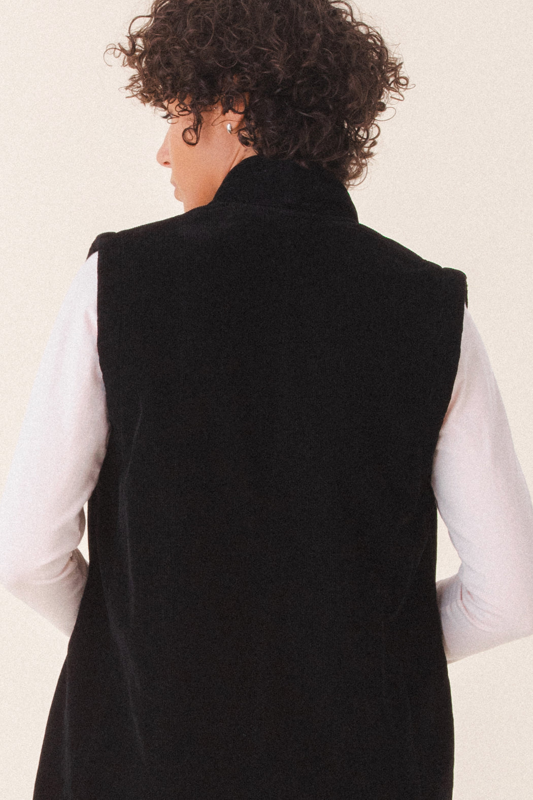 Free your arms with a vest, and make it three-quarters in length for the ultimate core warmth. The Fireside Vest will diminish the chill of drafts in winter while pulling together an ensemble that is equal parts elegance and industry. Excellent layered over or under your winter coat, this quilted, plant-based puffer will also be put to good use in every season in the Pacific Northwest.