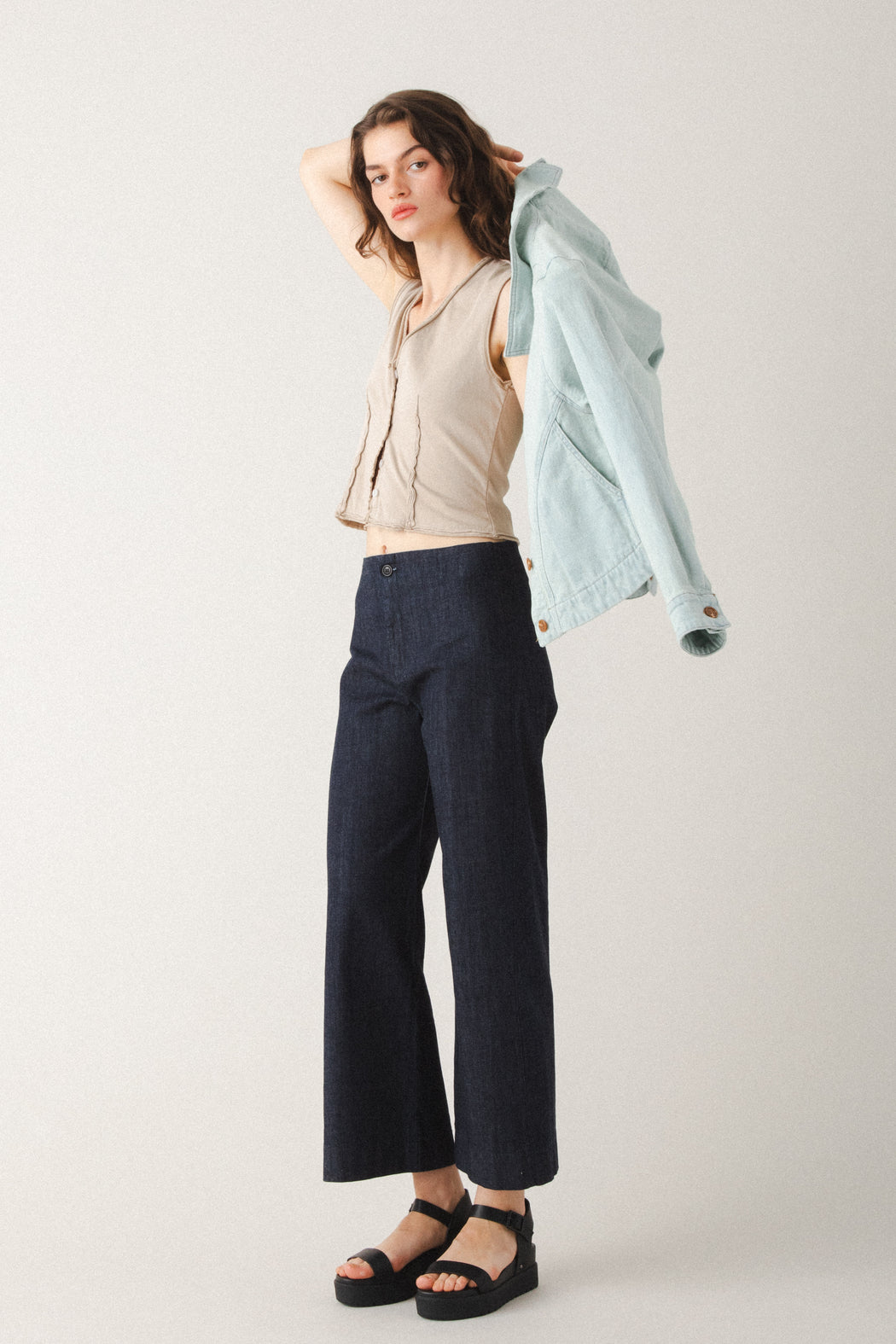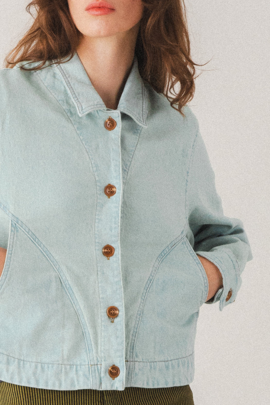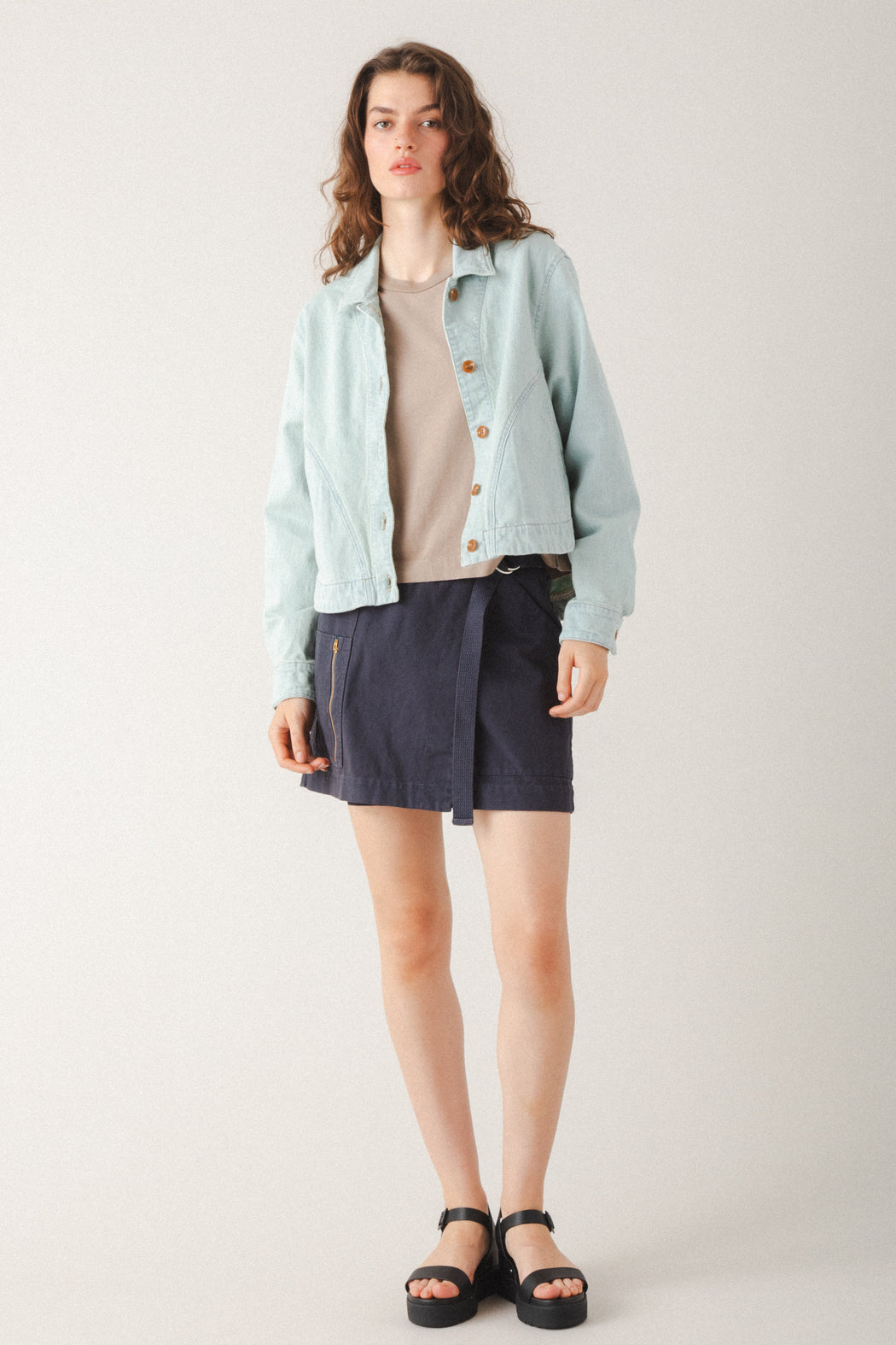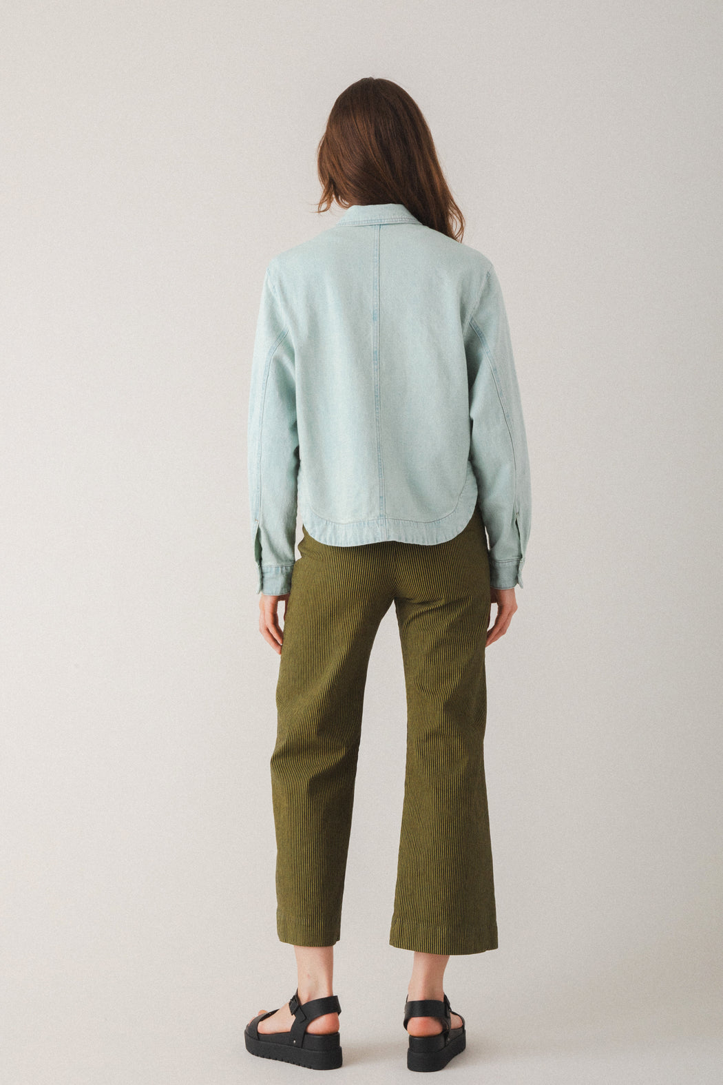 By juxtaposing curved and square shapes, the Juxtapose Jacket reimagines the classic jean jacket with a fresh, artful silhouette. Curved inset pockets and a rounded shirttail back hem are balanced by a square-cut front and classic shirt collar. The result is a bold yet versatile piece that blends utility, comfort, and thoughtful design. A true standout that styles effortlessly with dresses, denim, or tailored separates. Pair it with the Modette Jeans for a modern, head-turning suiting look.