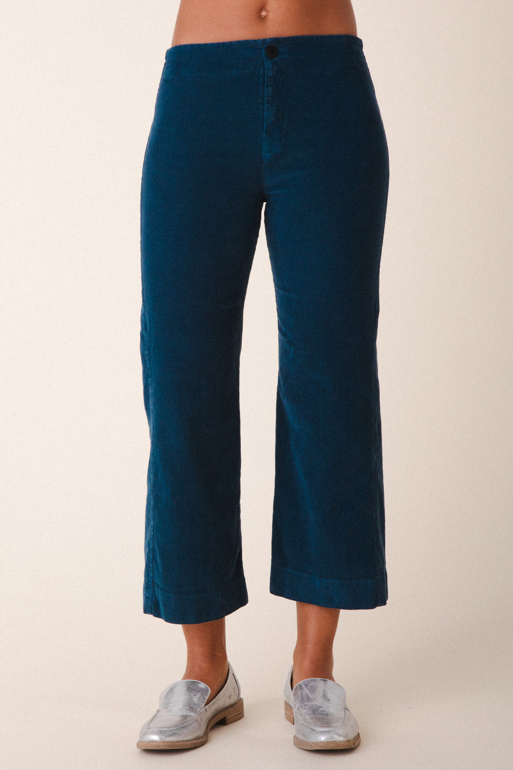 The corduroy version of our most popular pant, in a new and refreshed color palette. A mid-rise flared pant composed of high-stretch corduroy offers a shot of color to a classic silhouette. Back darts for shaping and a clean front suggest a minimal look that is also ideal for layering
