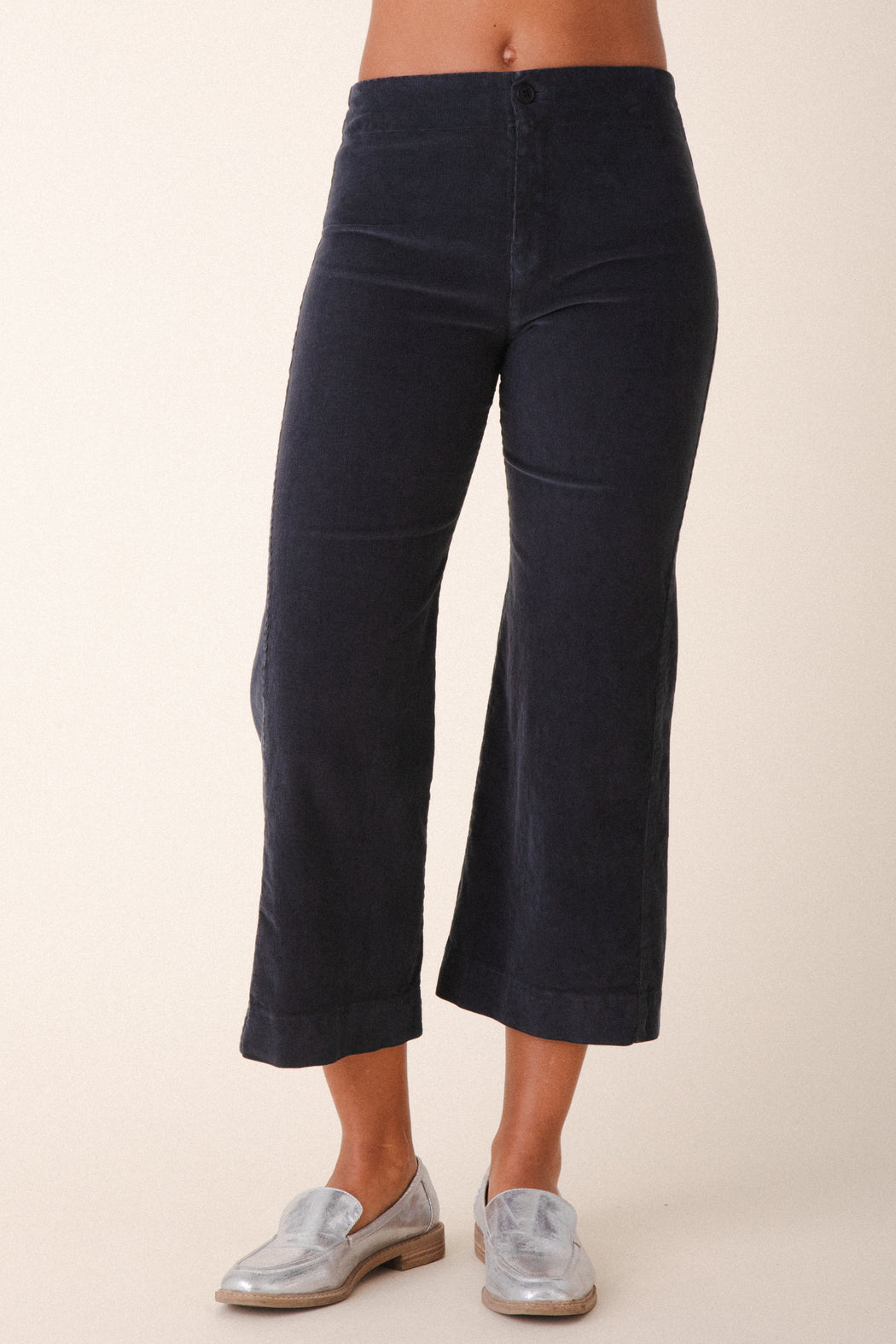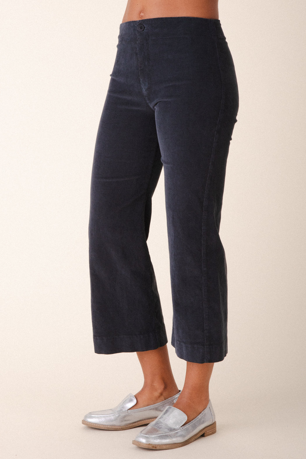 The corduroy version of our most popular pant, in a new and refreshed color palette. A mid-rise flared pant composed of high-stretch corduroy offers a shot of color to a classic silhouette. Back darts for shaping and a clean front suggest a minimal look that is also ideal for layering