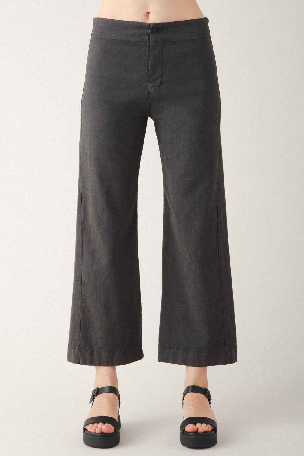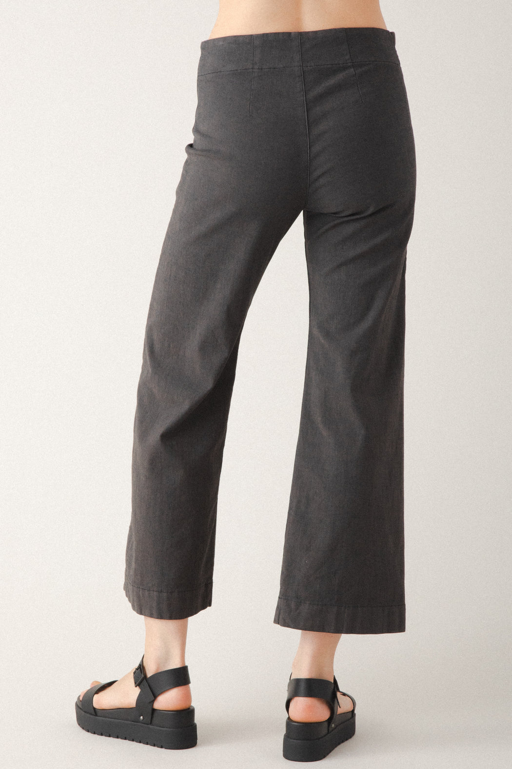 A sleek mid-rise, wide-leg, cropped pant made with high-stretch denim that conforms to your body. Casual and classic, the Knack has a mid-rise with two back darts for shaping and no pockets for a minimal look that is ideal for layering. Style it with fitted tops or oversized layers, it’s a versatile pant that works for both workdays and weekends. The Knack Pants are pre-shrunk and retain their shape. Some dye transfer may occur before the first two laundry cycles. Wash in cold water to prevent fading.