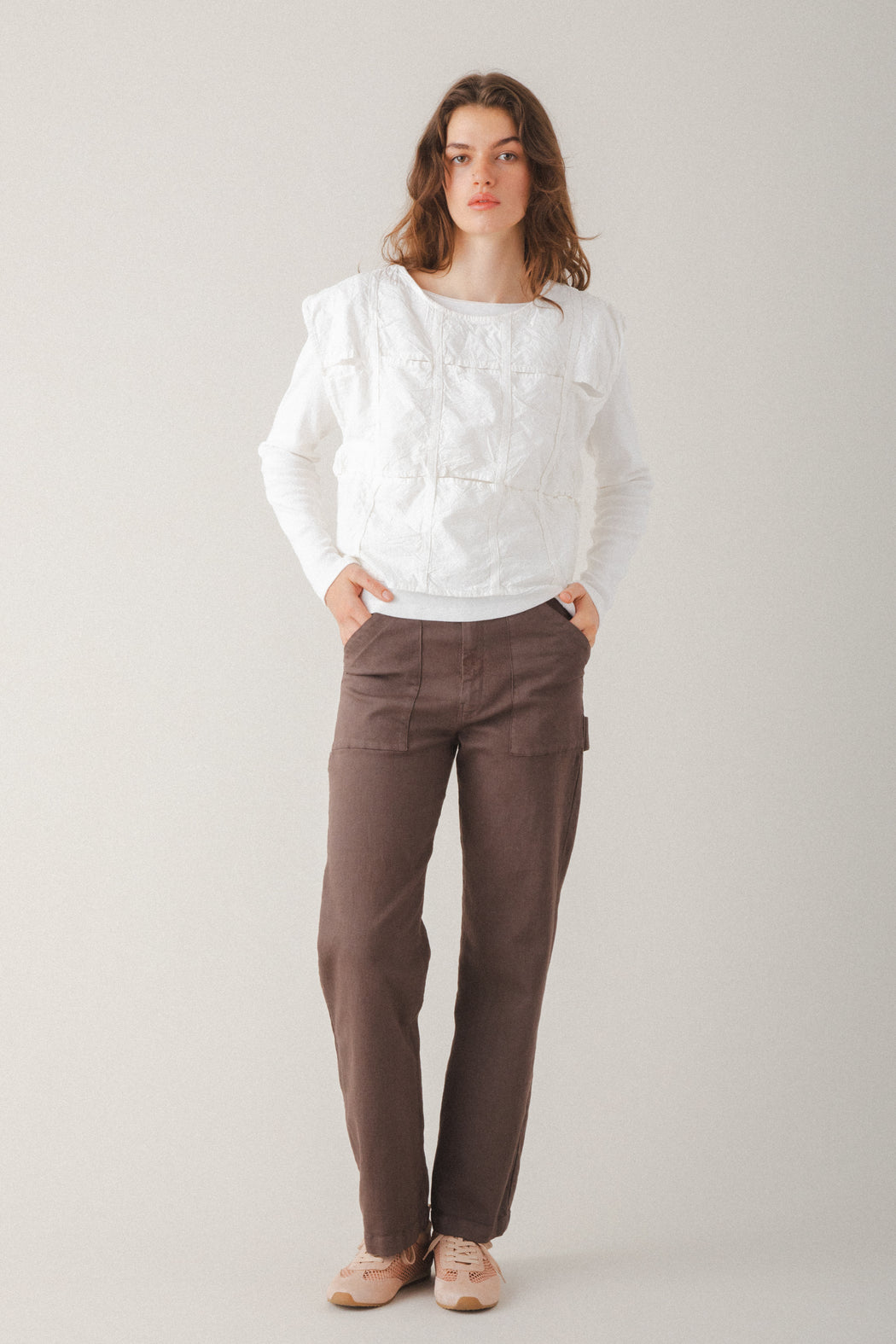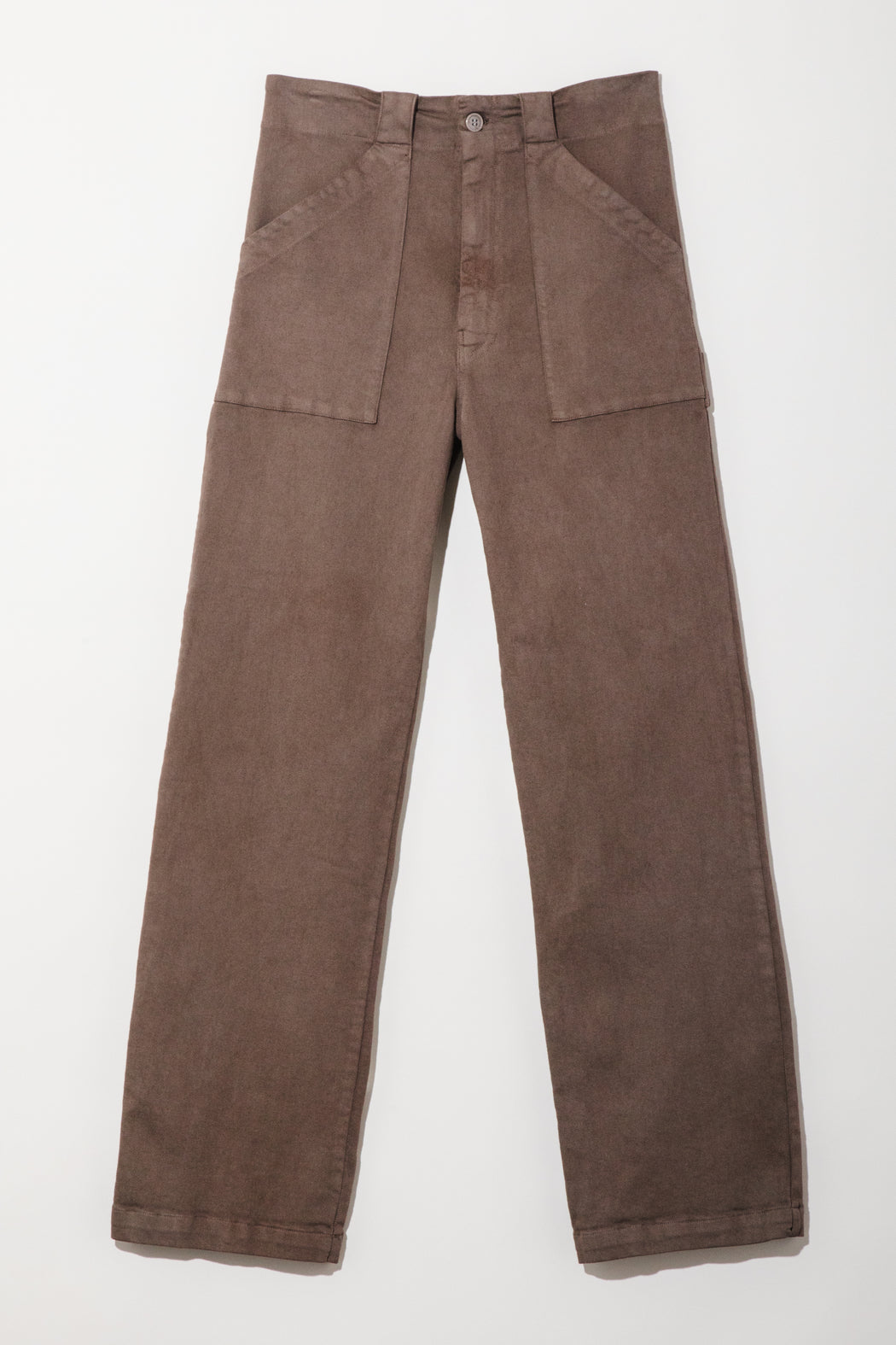 The Long Carpenter Pant blends utility details with a sleek, modern silhouette. Designed with an ultra-high-rise and engineered outer seams, it offers a more flattering fit than traditional work pants. Made from high-stretch deadstock twill, it delivers structure with serious comfort. Whether paired with a blouse or dressed down with a tee, this pant is built for versatility — combining rugged functionality with elevated design.