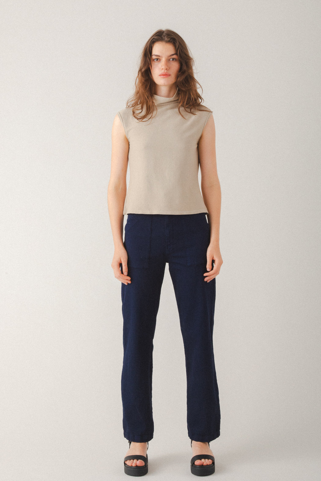 The Long Carpenter Pant blends utility details with a sleek, modern silhouette. Designed with an ultra-high-rise and engineered outer seams, it offers a more flattering fit than traditional work pants. Made from high-stretch deadstock twill, it delivers structure with serious comfort. Whether paired with a blouse or dressed down with a tee, this pant is built for versatility — combining rugged functionality with elevated design.