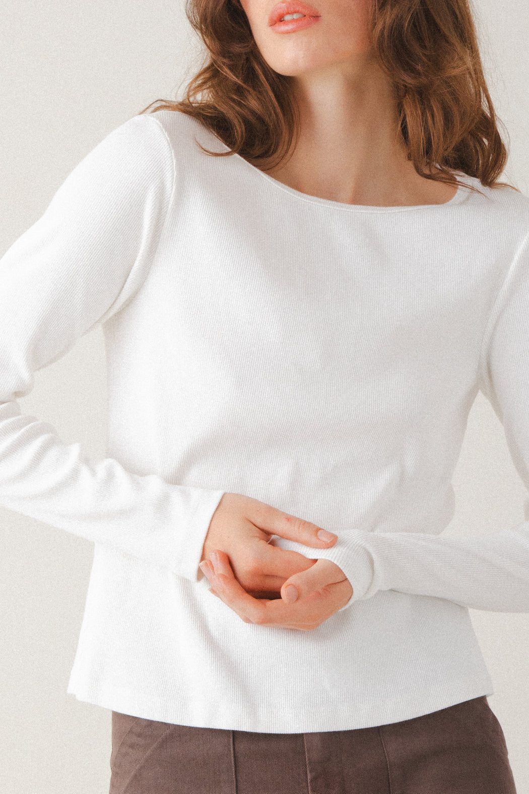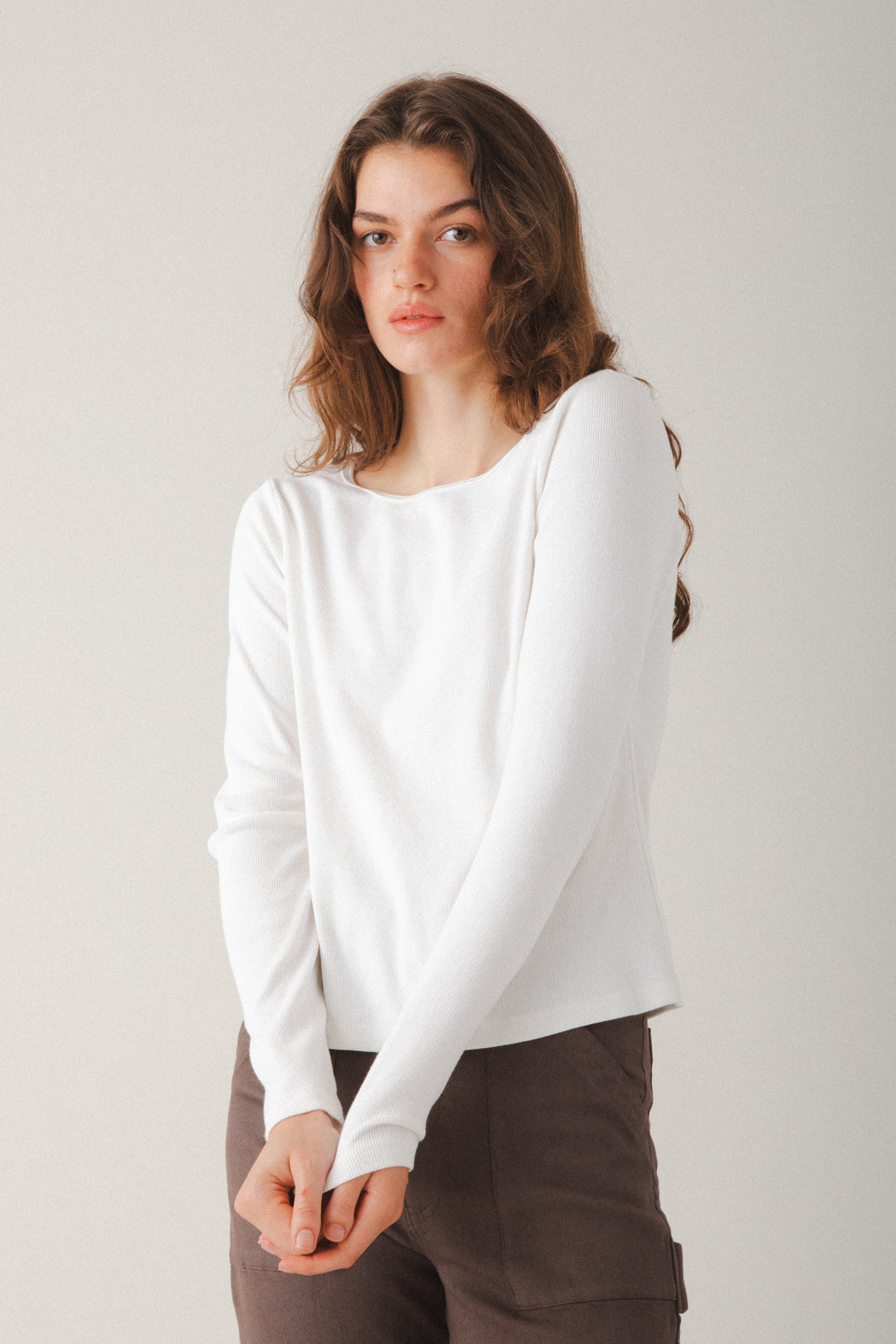 An everyday essential with an understated elegance, the Sandolo Top is crafted from an organic cotton/spandex blend that feels soft against the skin while offering just the right amount of structure. Its timeless long-sleeve silhouette makes it the ultimate layering piece — wear it under jackets, tucked into the Long Carpenter Pant, or relaxed over denim. A sustainable staple you’ll reach for year-round.